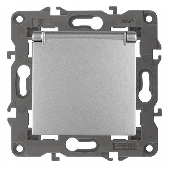 14-2103-03 ЭРА Розетка 2P+E Schuko со шторками с крышкой, 16A-250В, IP20, Эра Elegance, алюминий