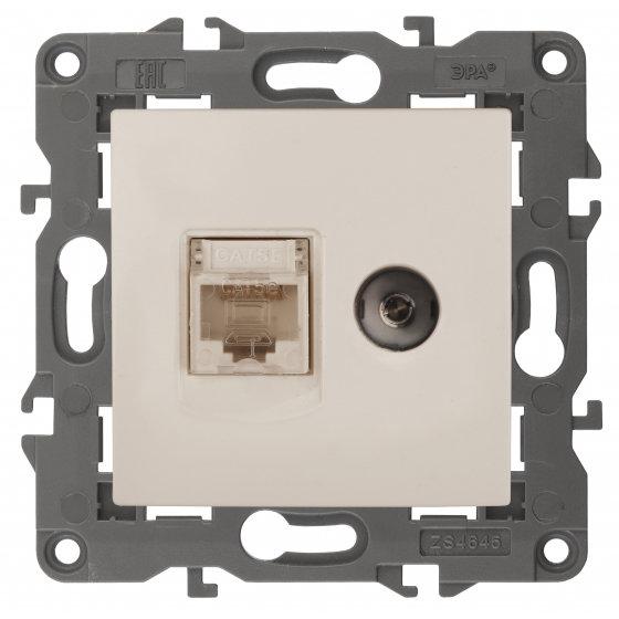 14-3110-02 ЭРА Розетка RJ45+TV, IP20, сл.кость