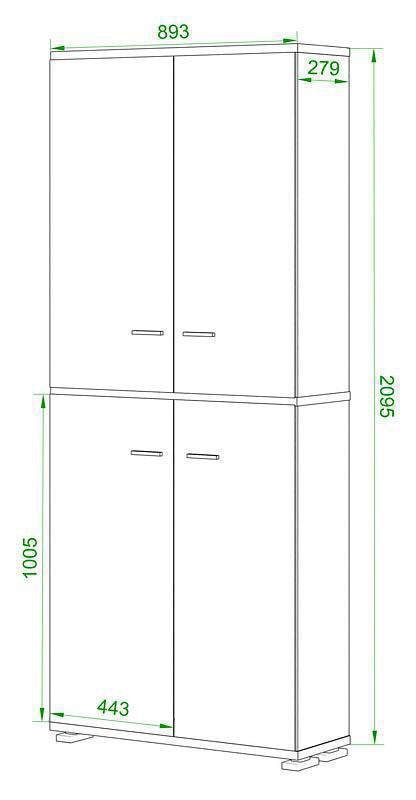4 дверцы, 9 полок
