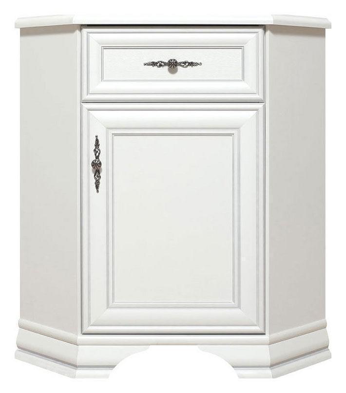 Тумба угловая Кентаки укомплектована одной распашной дверью и одним выдвижным ящиком на металлических роликовых направляющих.