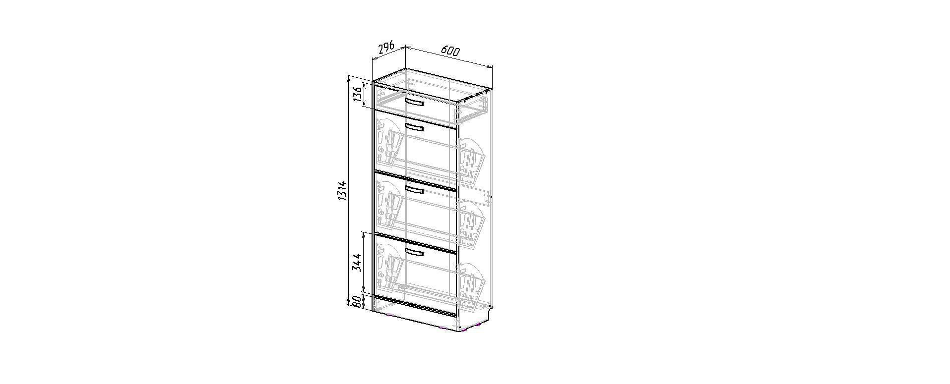 1 ящик, 3 дверцы,6 полок для обуви