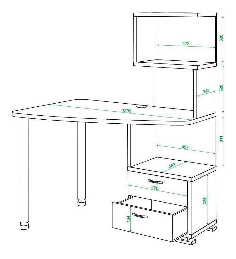 надстройка:2 полки;тумбочка:2 ящика