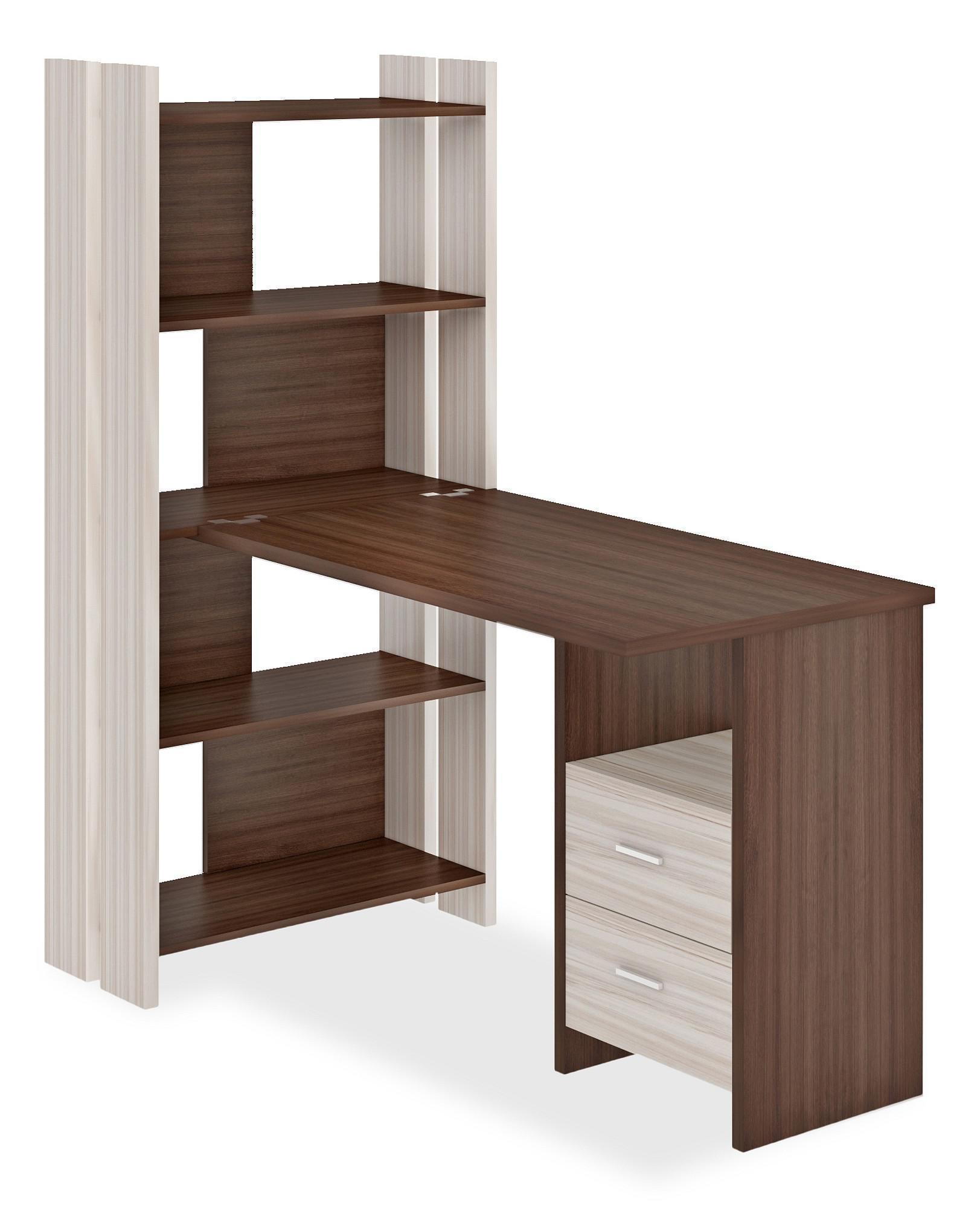 стеллаж: 4 полки;тумбочка: 1 полка, 2 ящика