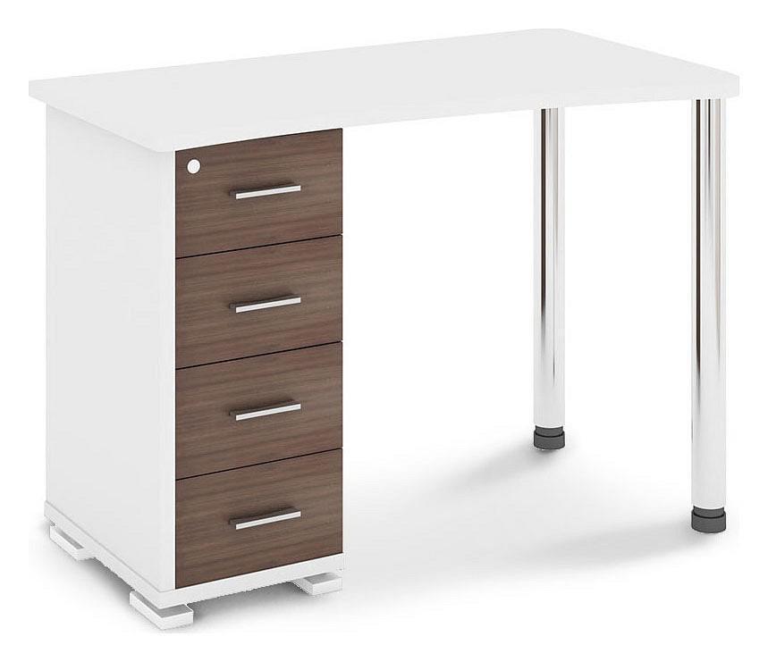 Учеба, работа или чтение – Стол письменный СКМ-50 , созданный брендом 2735048, отлично подойдет для реализации любых задач. Данная модель входит в серию «Домино» и способен подстроиться под нужды каждого члена семьи. Благодаря оптимальным размерам изделия (1100Х620Х765 мм) вы сможете с комфортом заниматься любимыми и важными делами. Базовая комплектация включает в себя непосредственно письменный стол, тумбочка: 4 ящика. Для изготовления корпуса был выбран ЛДСП Е1, металл в оттенке белый жемчуг, хром, завершает дизайн глянцевый, матовый верхний слой, гармонично перекликающийся со столешницей.