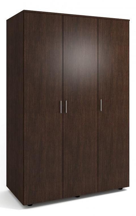 Ищете практичную и изысканную мебель для своего интерьера? Шкаф платяной Оптима-3 из коллекции «Оптима-3» – то, что вам нужно. в следующей комплектации: 1 штанга для вешалок, 3 дверцы, 6 полок. ЛДСП Е1, из которого изготовлен фасад, имеет качественное верхнее покрытие (оттенок «венге»), подходящее для использования в помещениях с повышенной проходимостью, а комфортные размеры изделия позволят выигрышно использовать полезное пространство (шкаф шириной 1200 мм и глубиной 550 мм, при этом вы сможете разместить в нем все необходимое благодаря внушительной высоте, равной 2200 мм).