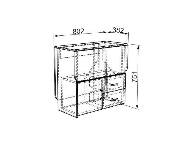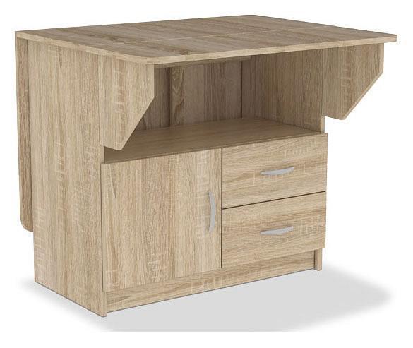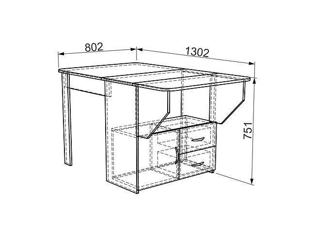 В разложенном виде за столом разместится до 4 человек.Тумба под столом позволяет хранить кухонную утварь в 2 выдвижных ящиках и на полке за дверцей.