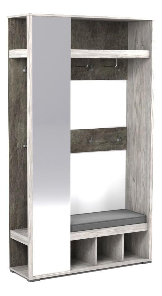 Стенка для прихожей Денвер выпущена популярным производителем мебели СБК. Она входит в серию «Денвер» и изготовлена в соответствии с общепринятыми стандартами качества. Матовый корпус изготовлен из износостойкого материала (ЛДСП Е1), отличающегося долговечностью и практичностью, а его оттенок («риббек серый, камень темный») оптимально сочетается с расцветкой и фактурой фасада (, цвет «»). Стенка для прихожей Денвер включает в себя следующие компоненты: 2 полки, зеркало, крючки. Желаем приятных покупок на нашем сайте!