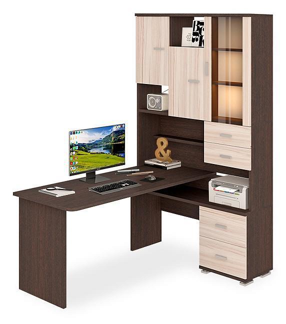 В современном мире мало кто обходится без персонального компьютера. Он необходим нам для работы, учебы или просто общения с близкими. Стол компьютерный Домино СР-620/160 – то, что нужно, чтобы сделать качественное рабочее место, которое позволит разместиться с максимальным комфортом. Данная модель создана компанией 2735048, серия «Домино», на продукцию предоставляется гарантия (12 мес.). Матовый корпус сделан из износостойкого и надежного материала (ЛДСП Е1) и прекрасно впишется в любой интерьер благодаря эффектному оттенку (венге). Столешница, толщина которой составляет 25 мм (материал столешницы), имеет матовый верх, при этом общие габариты компьютерного стола составляют 1300 мм в ширину и 2160 мм в высоту. Производитель также включил в комплект шкаф комбинированный: 3 дверцы, 4 ящика, полки.