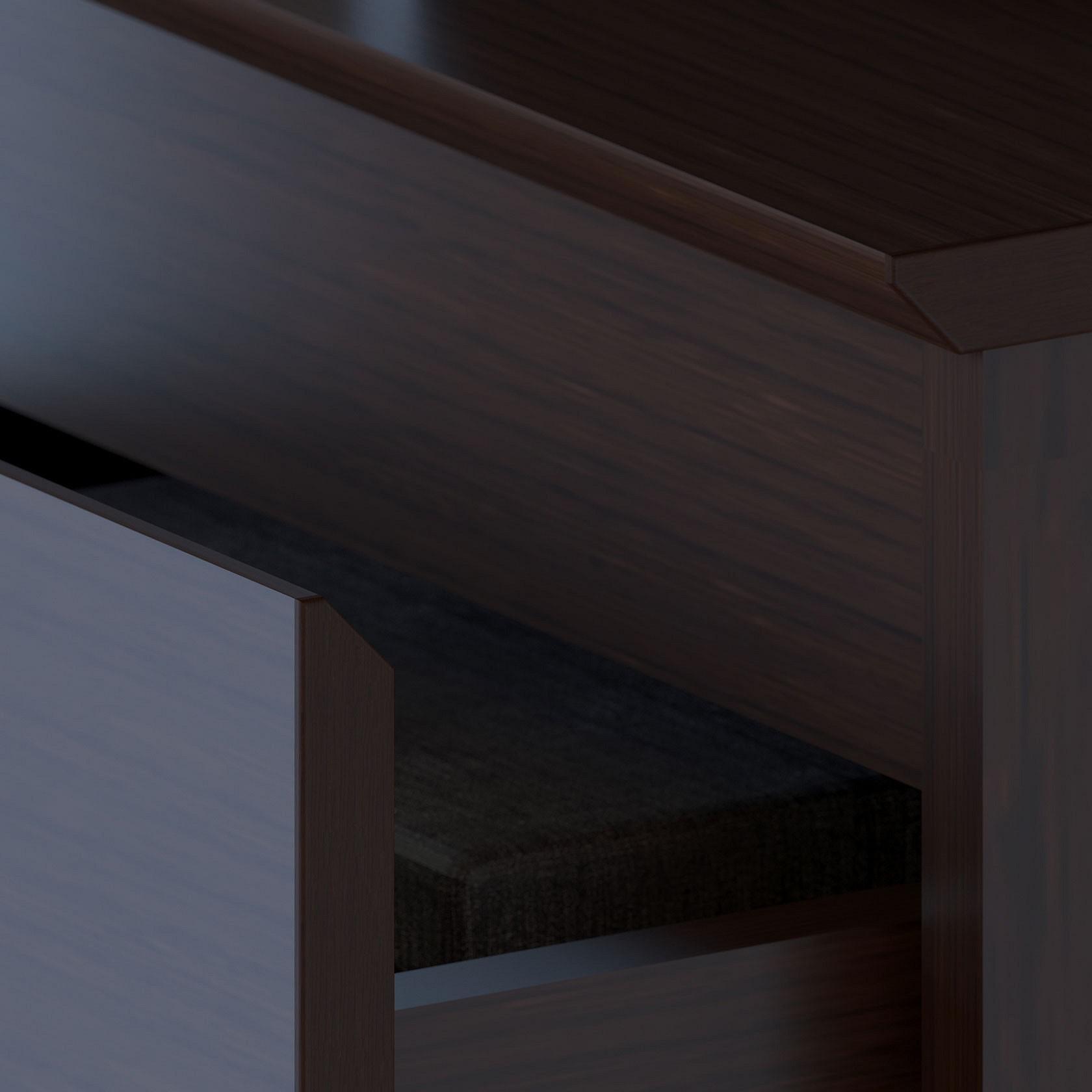Отличительной особенностью модели является спил под 45° в верхней части фасадов, благодаря которому открывание ящиков осуществляется без ручек.