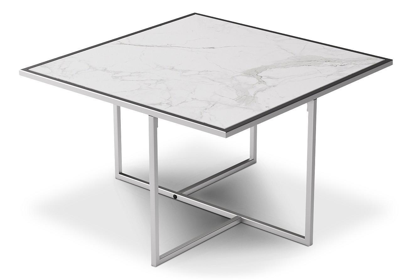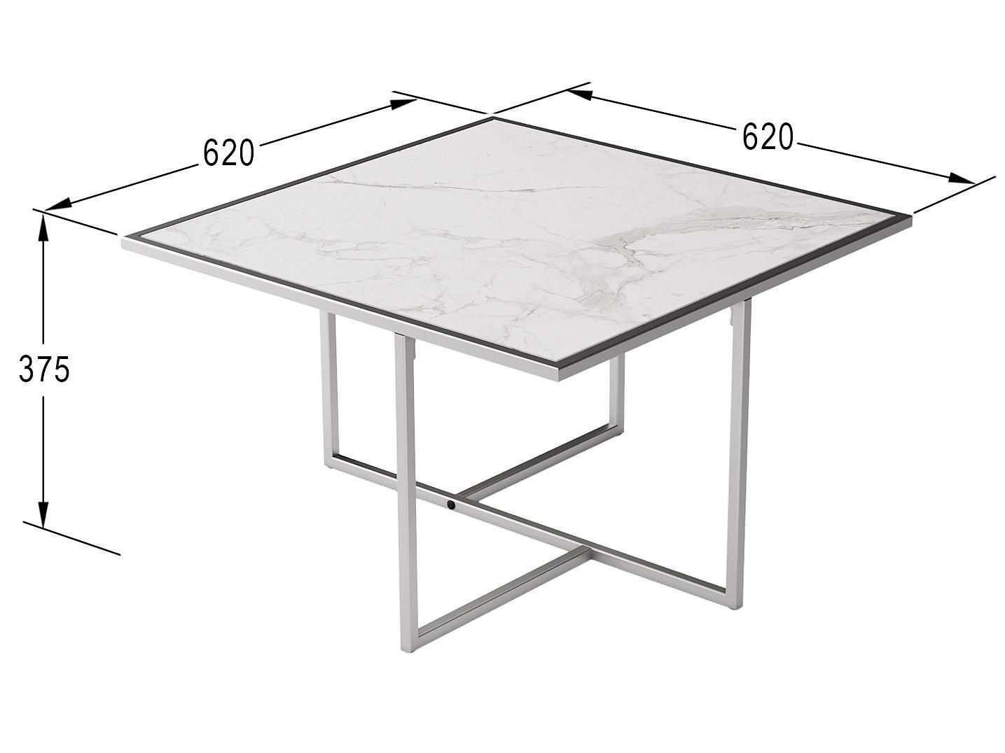 Журнальный стол Лоренцо квадро, в современном стиле, выполнен в комбинации металлической хромированной основы и столешницы из глянцевого керамогранита.