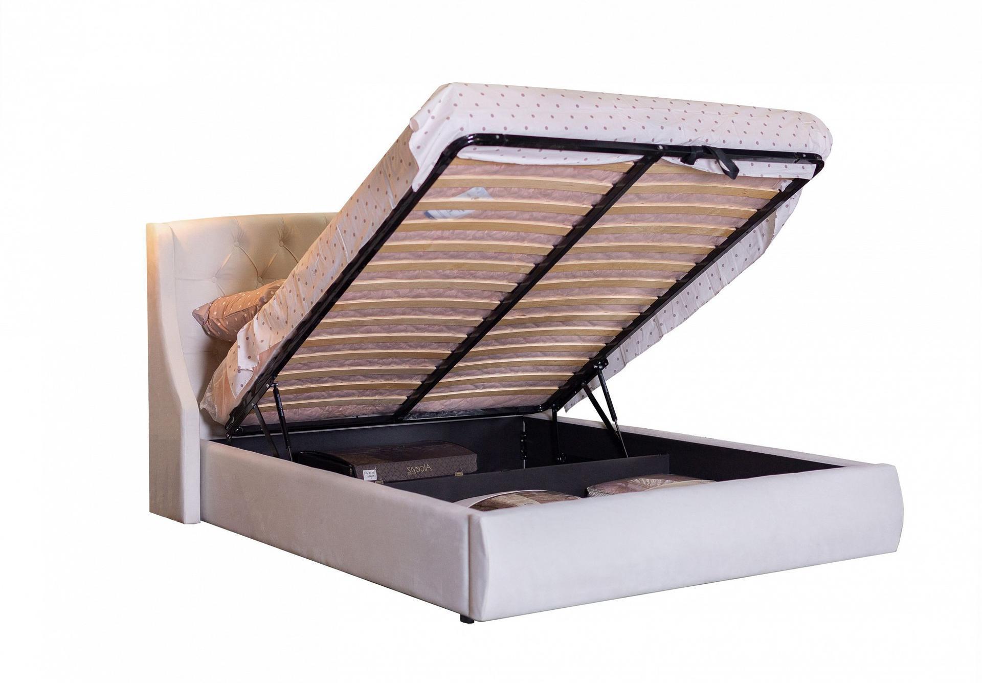 Ценители прекрасного поистине оценят мягкую интерьерную кровать Stefani из ткани с подъемным механизмом и высоким изголовьем.