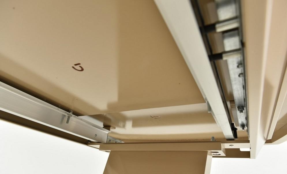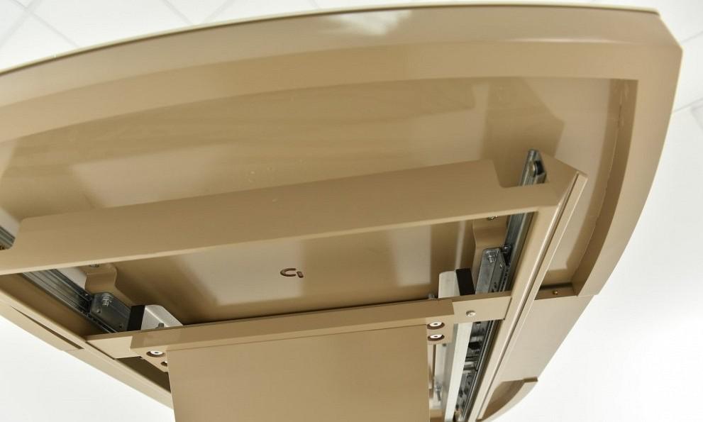 Стол из массива дерева с синхронно-подъемным механизмом раздвижения,каркас металл, основание нержавеющая сталь. Стекло матте Opti.