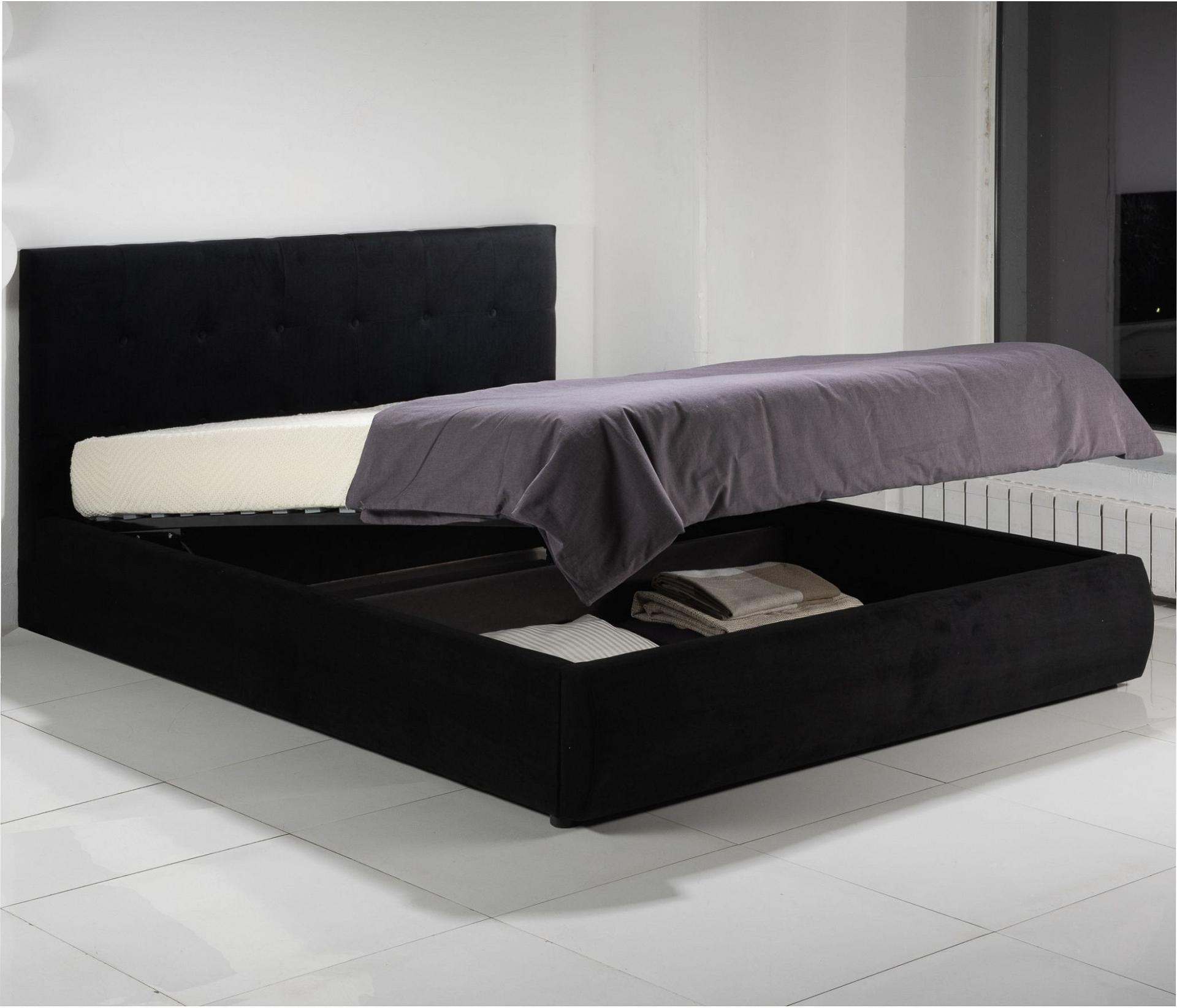 Кровать Селеста с высоким оригинальным изголовьем и подъемным механизмом имеет рельефную мягкую спинку с неглубокими стяжками, которые придают особую изысканность изголовью.