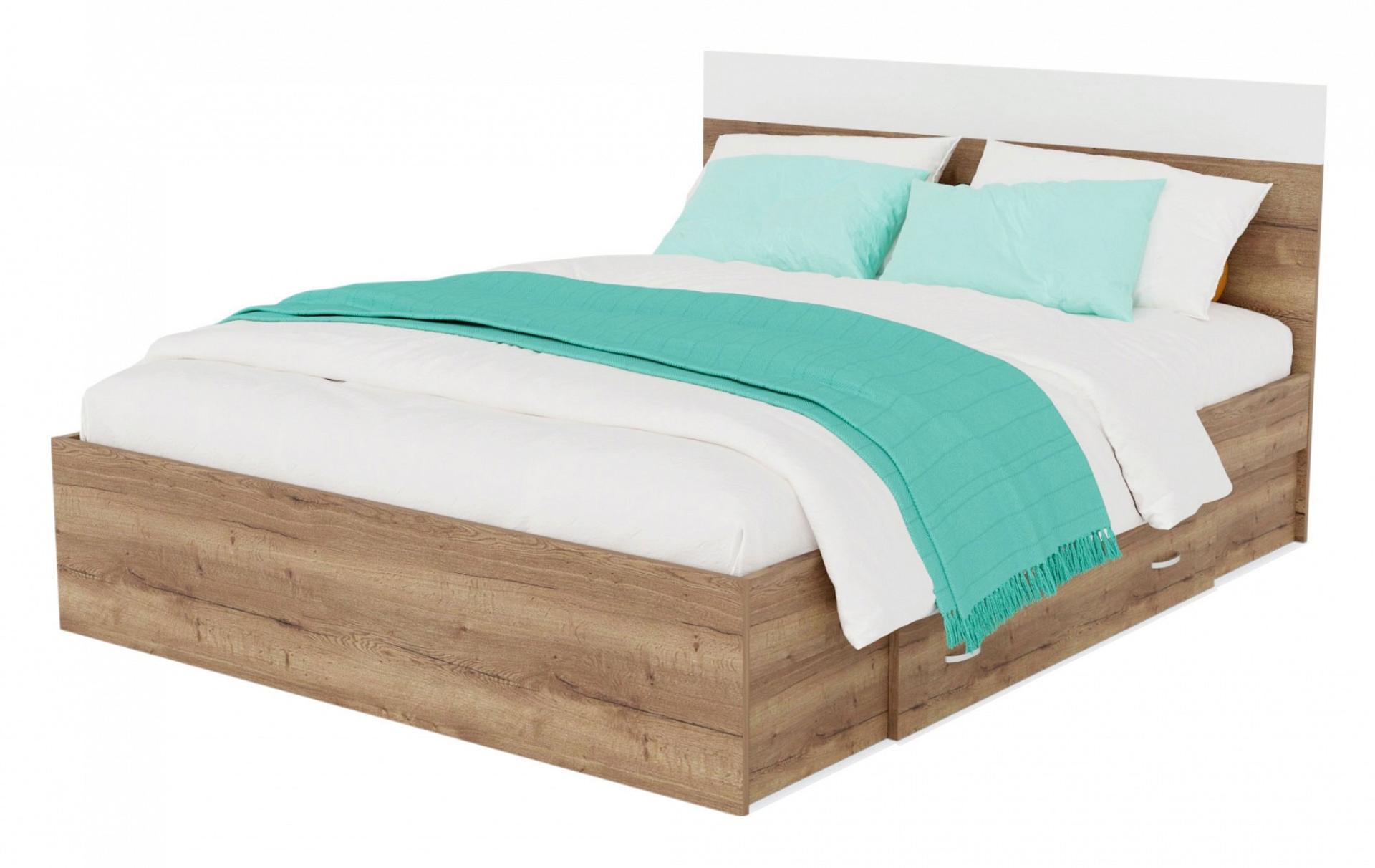 Изголовье кровати выполнено с сочетанием двух текстур – дуб золотой и белый.