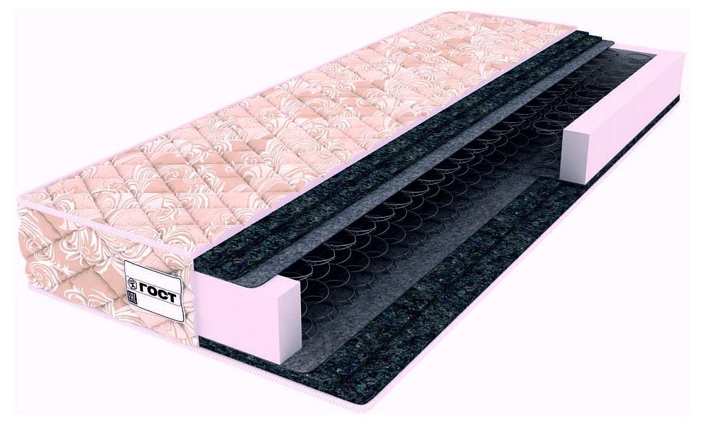Кровать укомплектована матрасом, выполненным по системе ГОСТ. Классический матрас ГОСТ на блоке пружин Bonnell (Боннель) – одно из самых надежных матрасных оснований. Оптимальная плотность пружин позволяет равномерно распределять давление и избежать «эффекта гамака».
