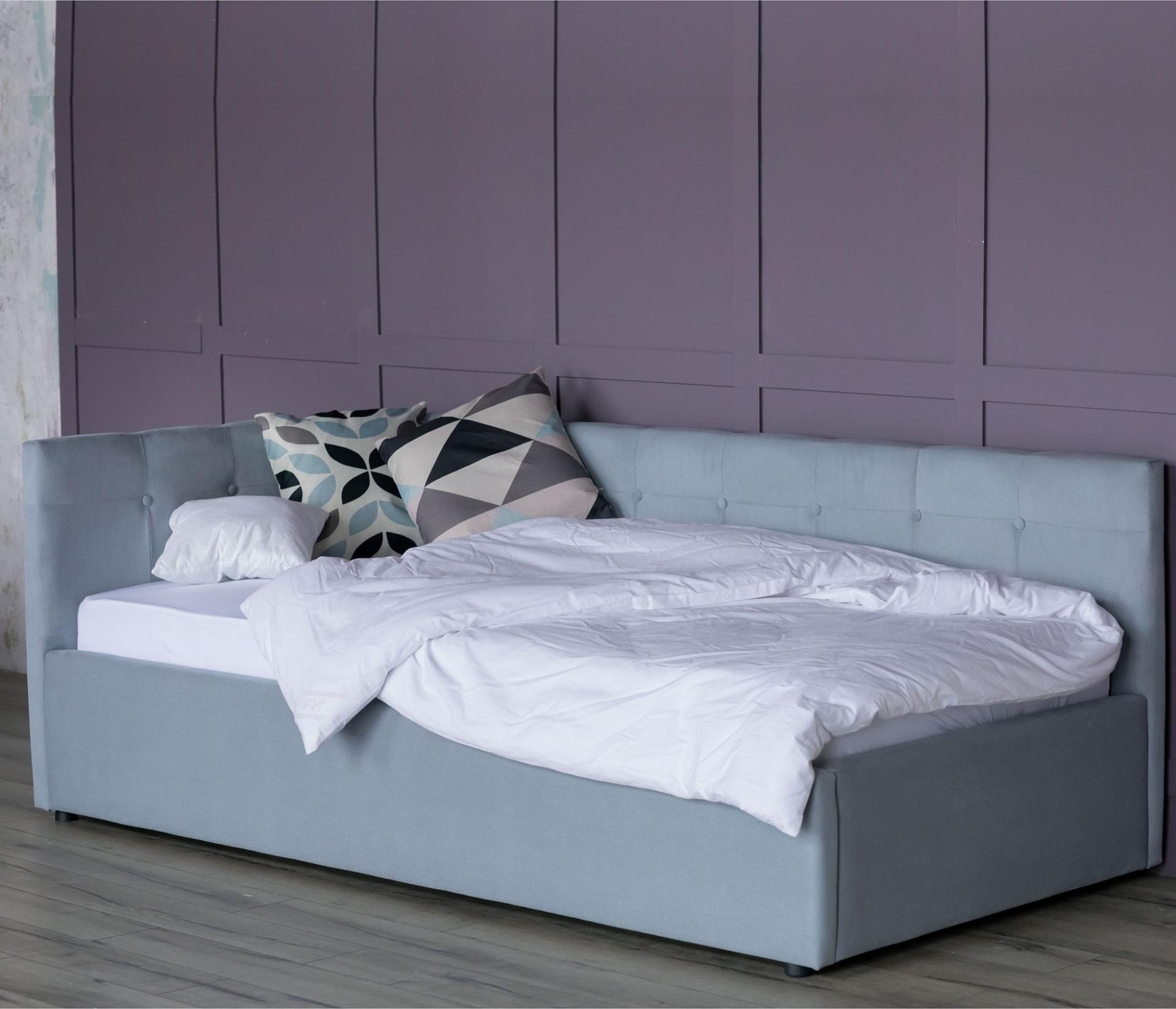 Односпальная кровать Bonna – уникальный предмет мебели, который совмещает в себе полноценную кровать и диван. Кровать с двумя мягкими спинками выполнена из модной мебельной ткани – велюр. Ткань износостойкая, легко чистится от загрязнений, практичная, эластичная, устойчивая к ультрафиолету.