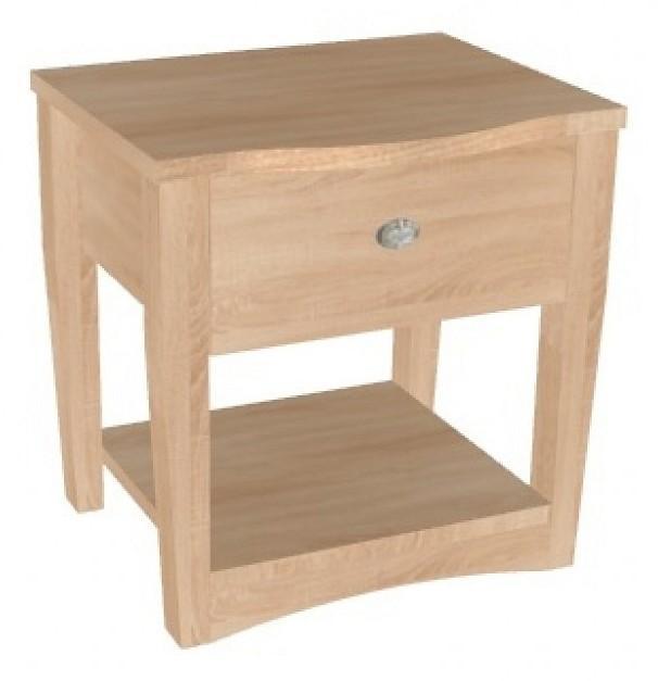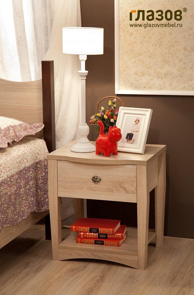 Легкость и оригинальность прикроватной тумбочки с фигурной столешницей и цоколем подчеркивается изящными скошенными опорами.В выдвижном ящике используются шариковые направляющие полного выдвижения, которые выдерживают большую нагрузку по сравнению с роликовыми направляющими и имеют плавный ход при открывании/закрывании.