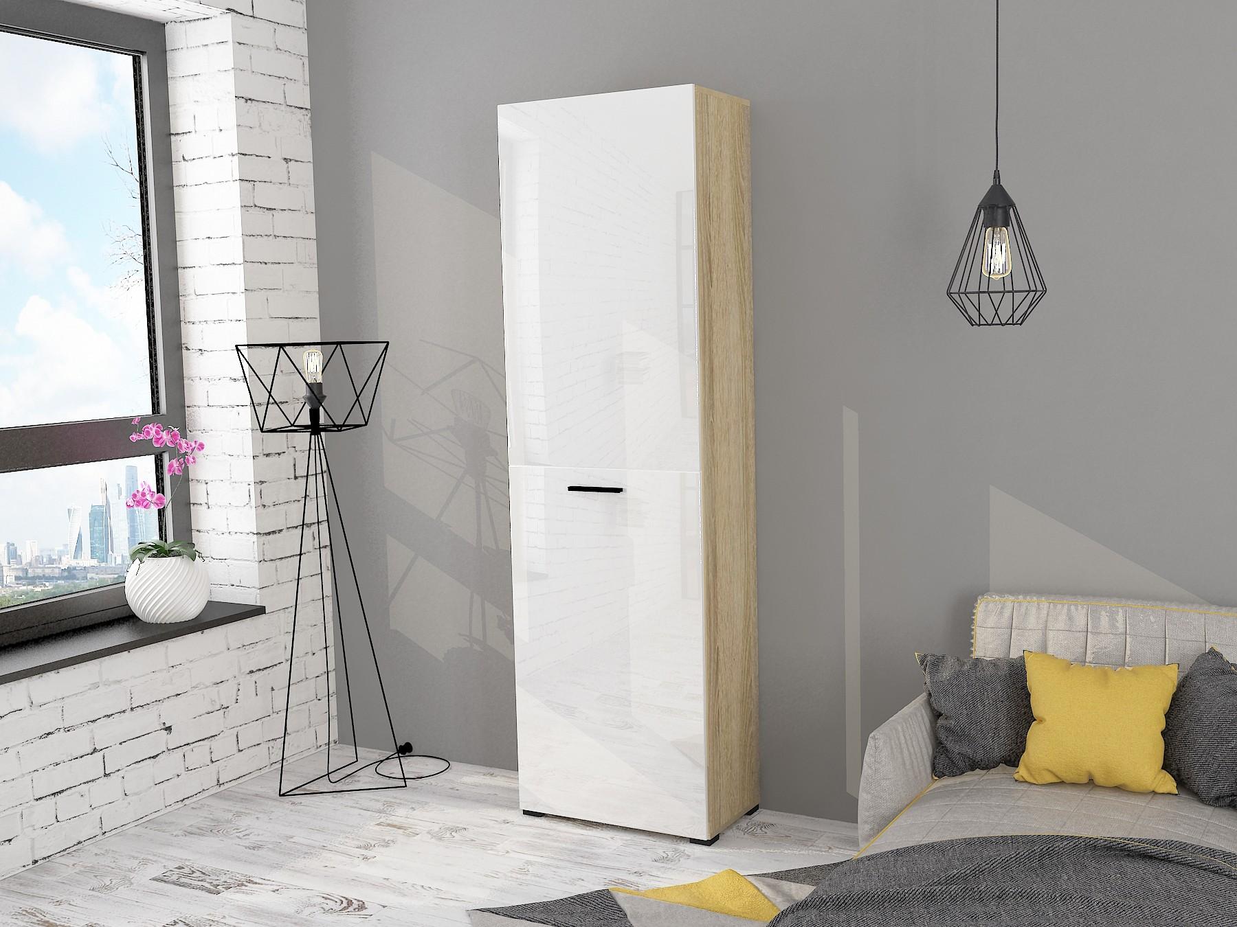 - Скандинавские декоры – ЛДСП Дуб Сонома и МДФ Белый глянец, мебельная ручка черного цвета.