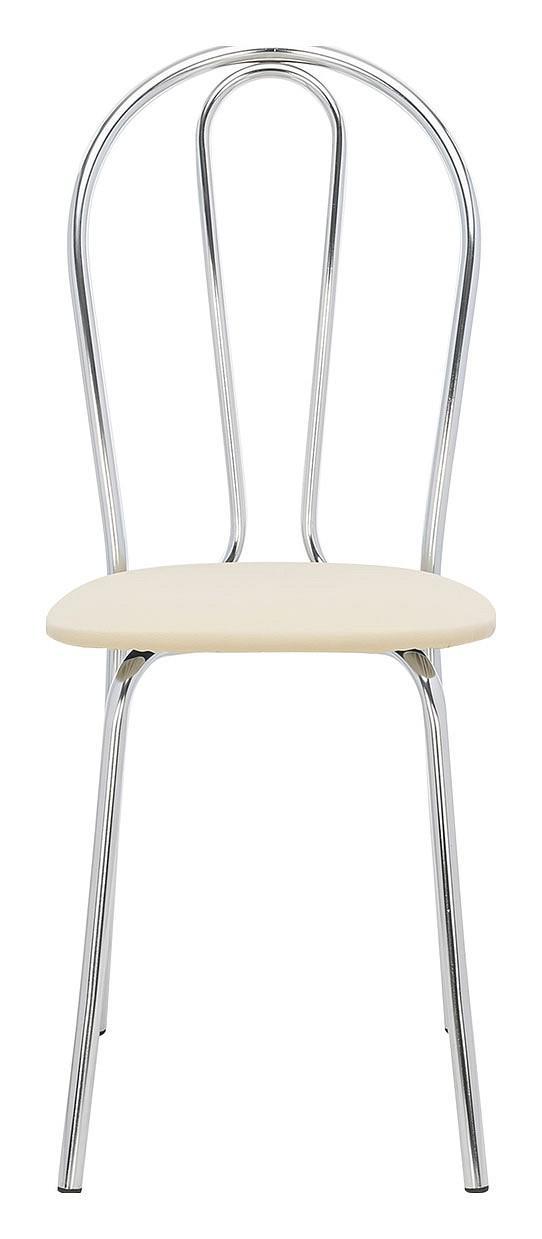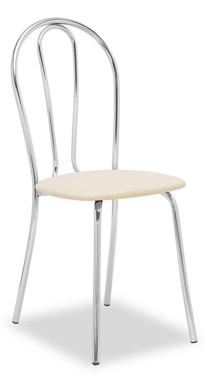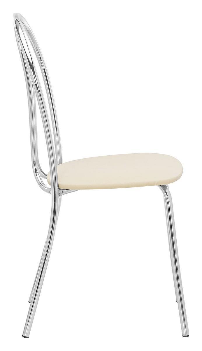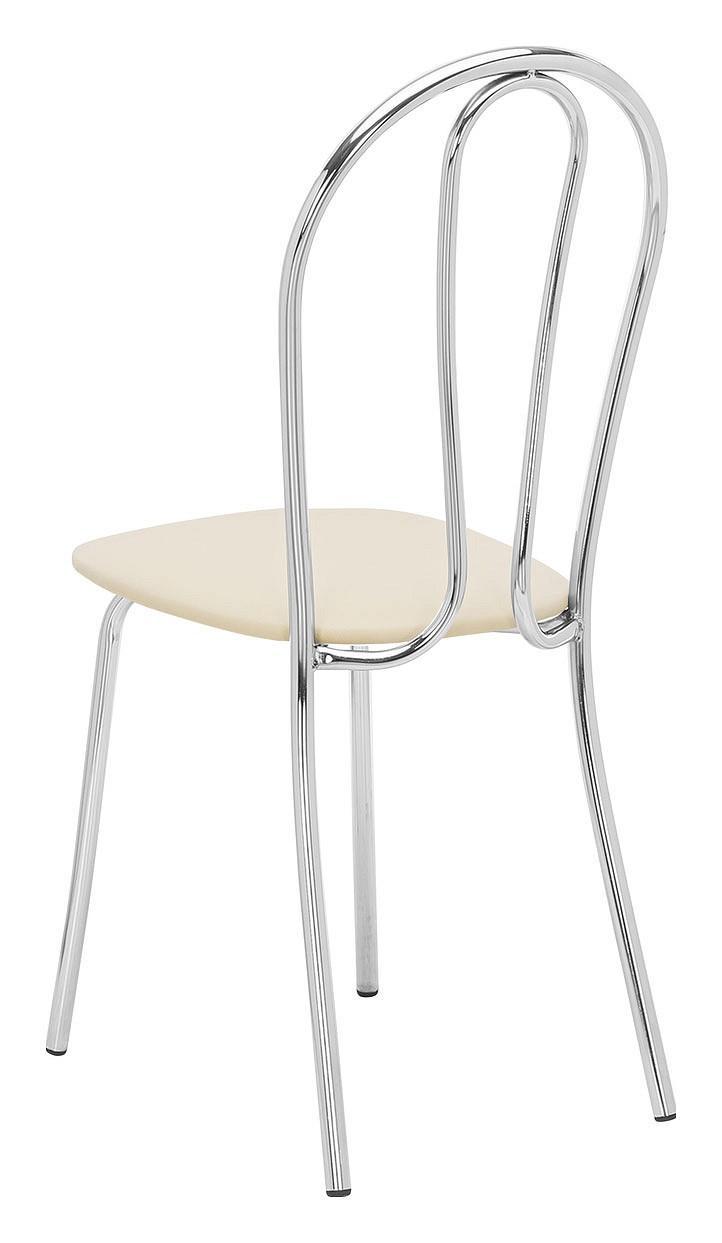 Хромированная металлическая спинка и сиденье, обтянутое экокожей, практичны, удобны и не требуют специального ухода.