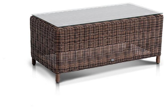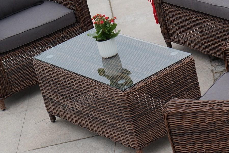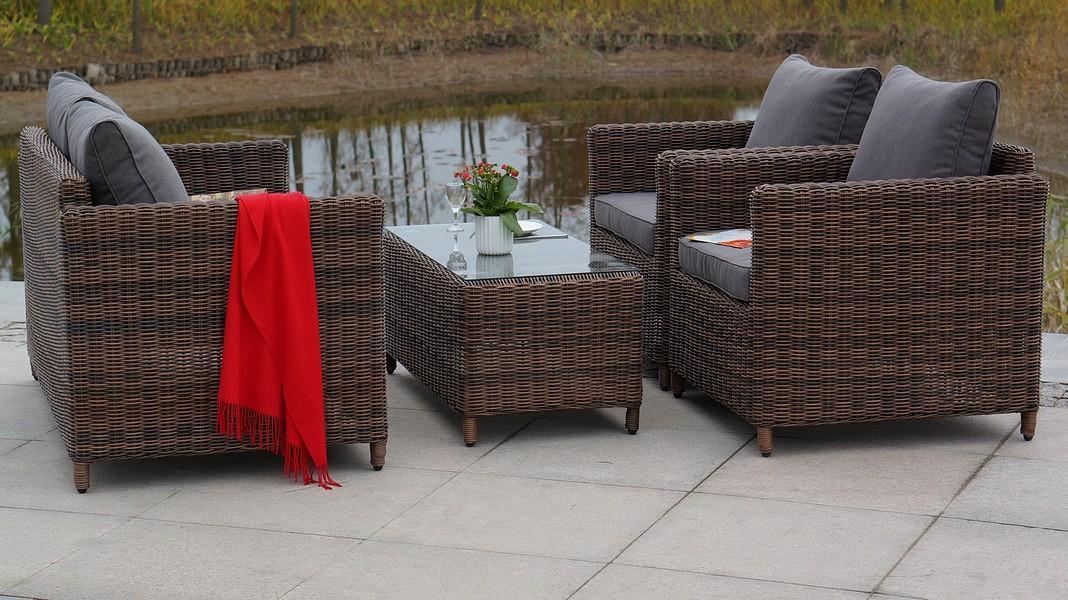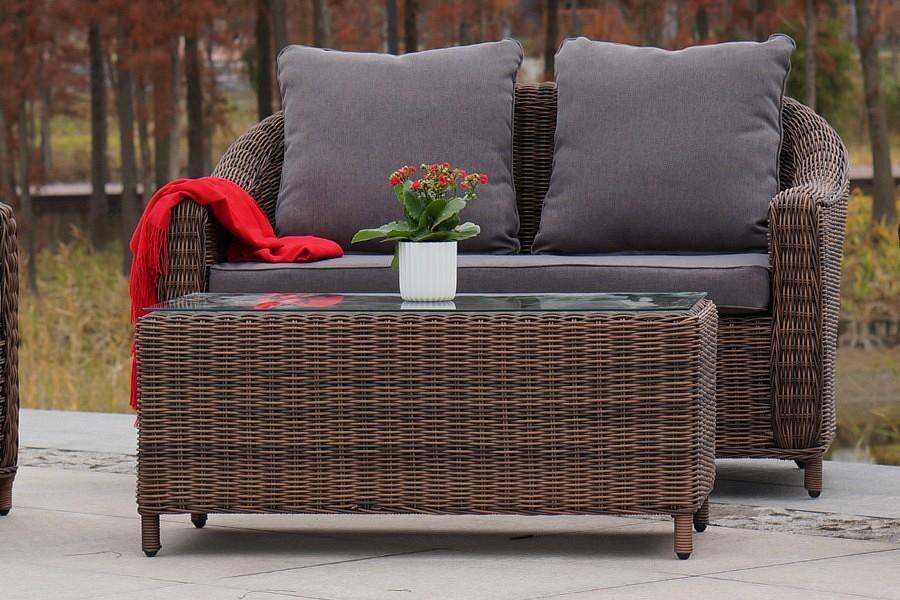 В основе мебели находится алюминиевый каркас высокой прочности. Декоративной составляющей является ручная круглая оплетка, которая выполнена из искусственного ротанга.