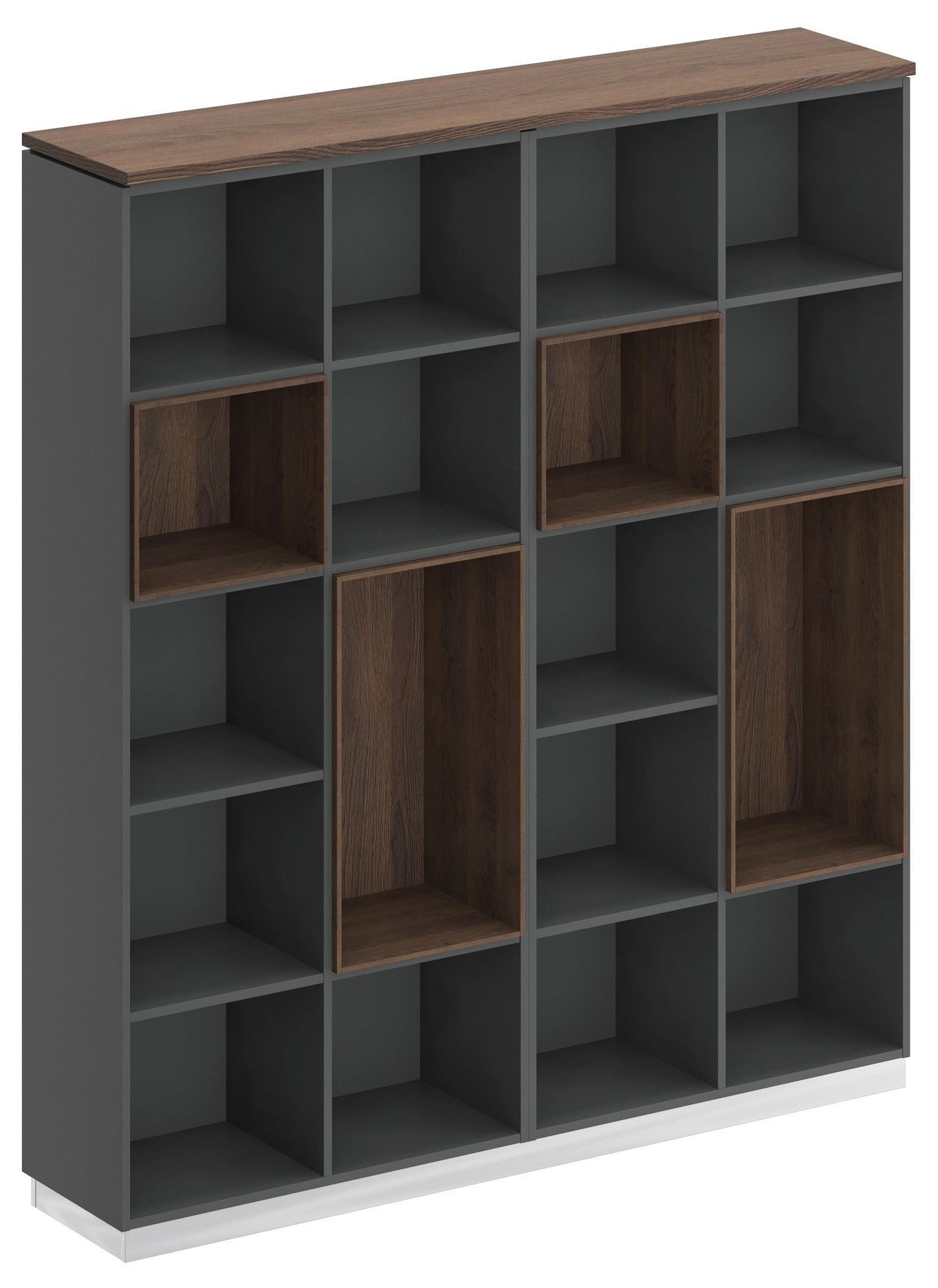 Стеллаж является стенкой из двух стеллажей под общим топом. Декоративный зазор между топом и боковыми стенками стеллажей.
