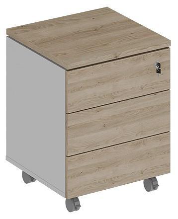 Тумбочка имеет 3 выдвижных ящика, установленных на направляющие TANDEM (BLUM) частичного выдвижения на 75% глубины, имеющие плавный ход и системой открывания Push To Open (без ручек). Динамическая нагрузка 30 кг. Верхний ящик тумбы запирается на замок. Тумба устанавливается на прорезиненные колесные опоры, две из них имеют стопор.
