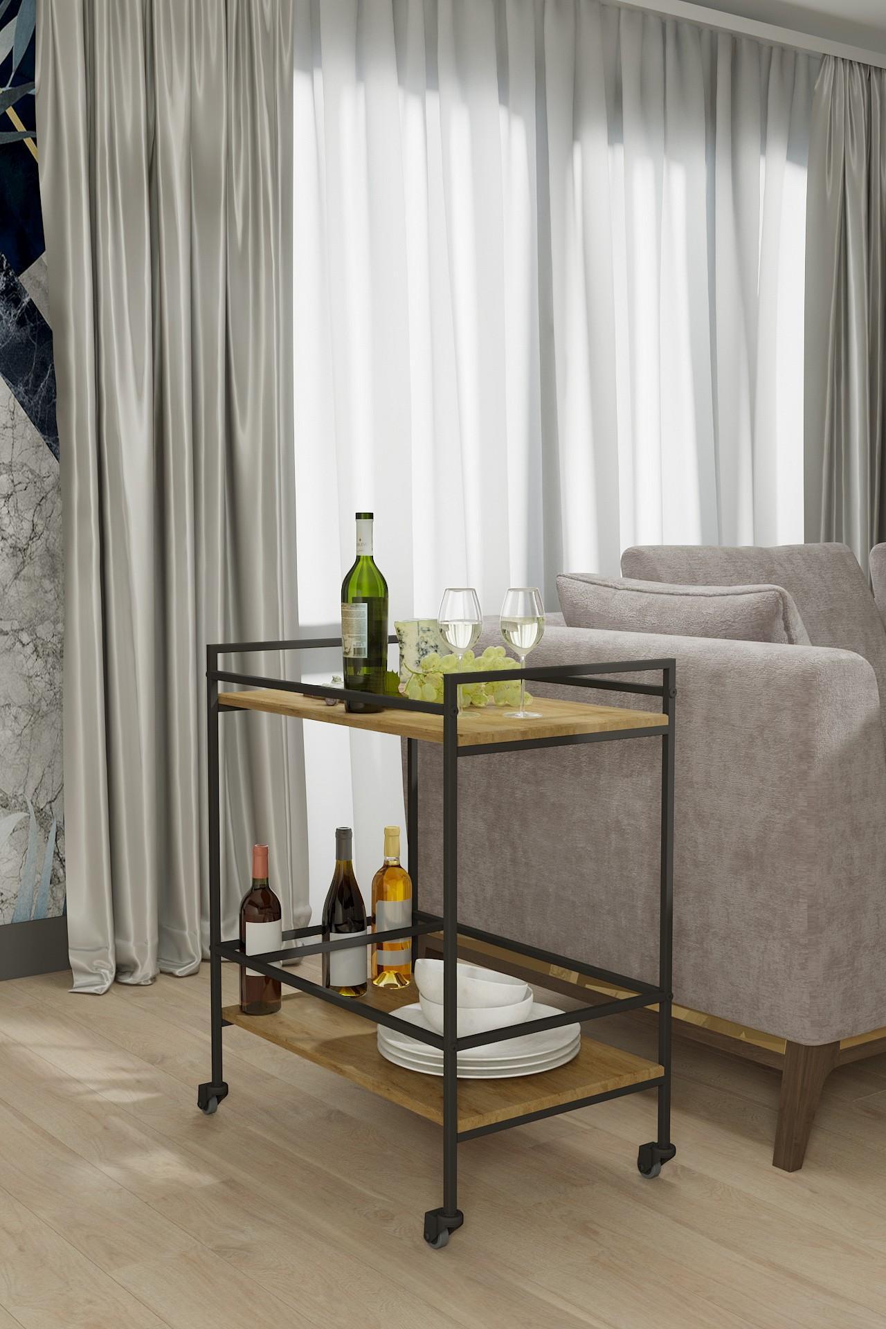 Сервировочный столик Спич оснащен дополнительным местом для хранения напитков, вместительной столешницей и прочными поворотными колесами для плавного и бесшумного перемещения. Каркас выполнен из профильной трубы, столешница и полка - из прочного и влагостойкого материала МДФ, облицованного декоративным покрытием в современном цветовом решении.