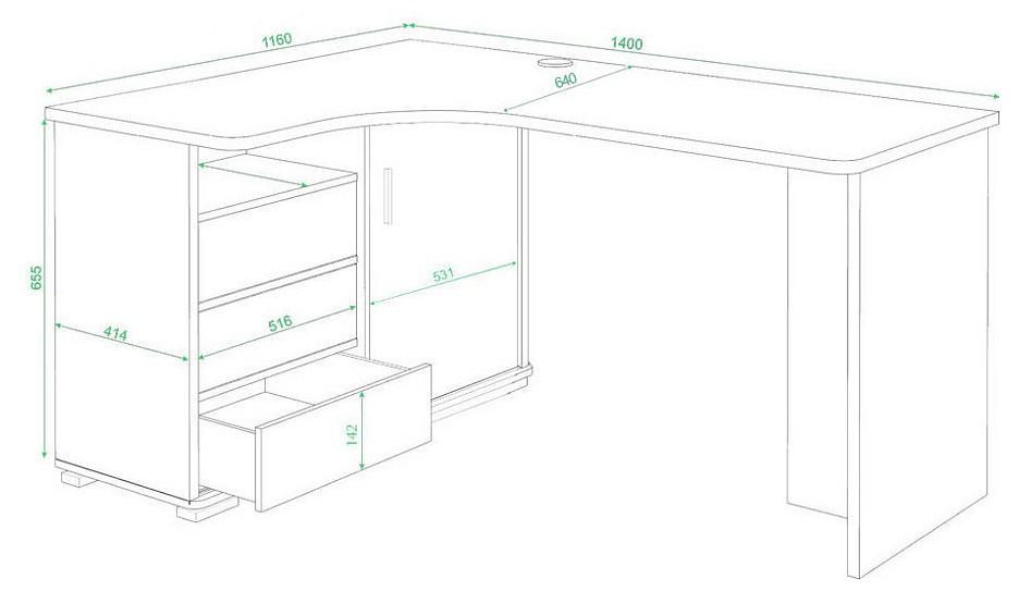 Работа, учеба или чтение – Стол письменный Домино СР-145С MER_SR-145S-KBEK-PRAV-NOVYJ, созданный брендом 2735048, отлично подойдет для выполнения любых задач. Эта модель входит в серию «Домино» и адаптирован под нужды каждого члена семьи. Благодаря оптимальным размерам изделия (1400Х1160Х745 мм) вы сможете с комфортом заниматься любимыми и важными делами. Базовая комплектация включает в себя непосредственно письменный стол, тумба: