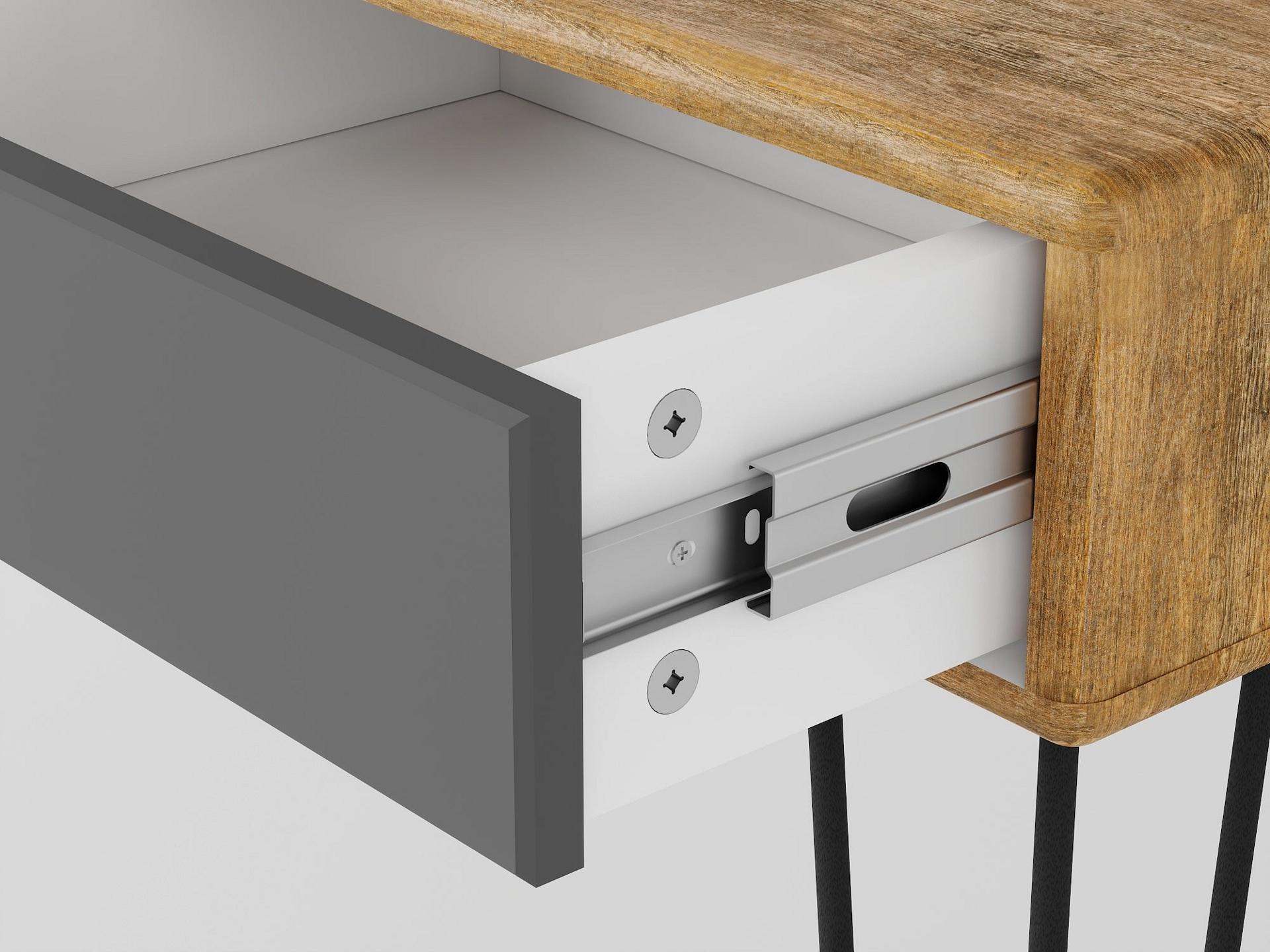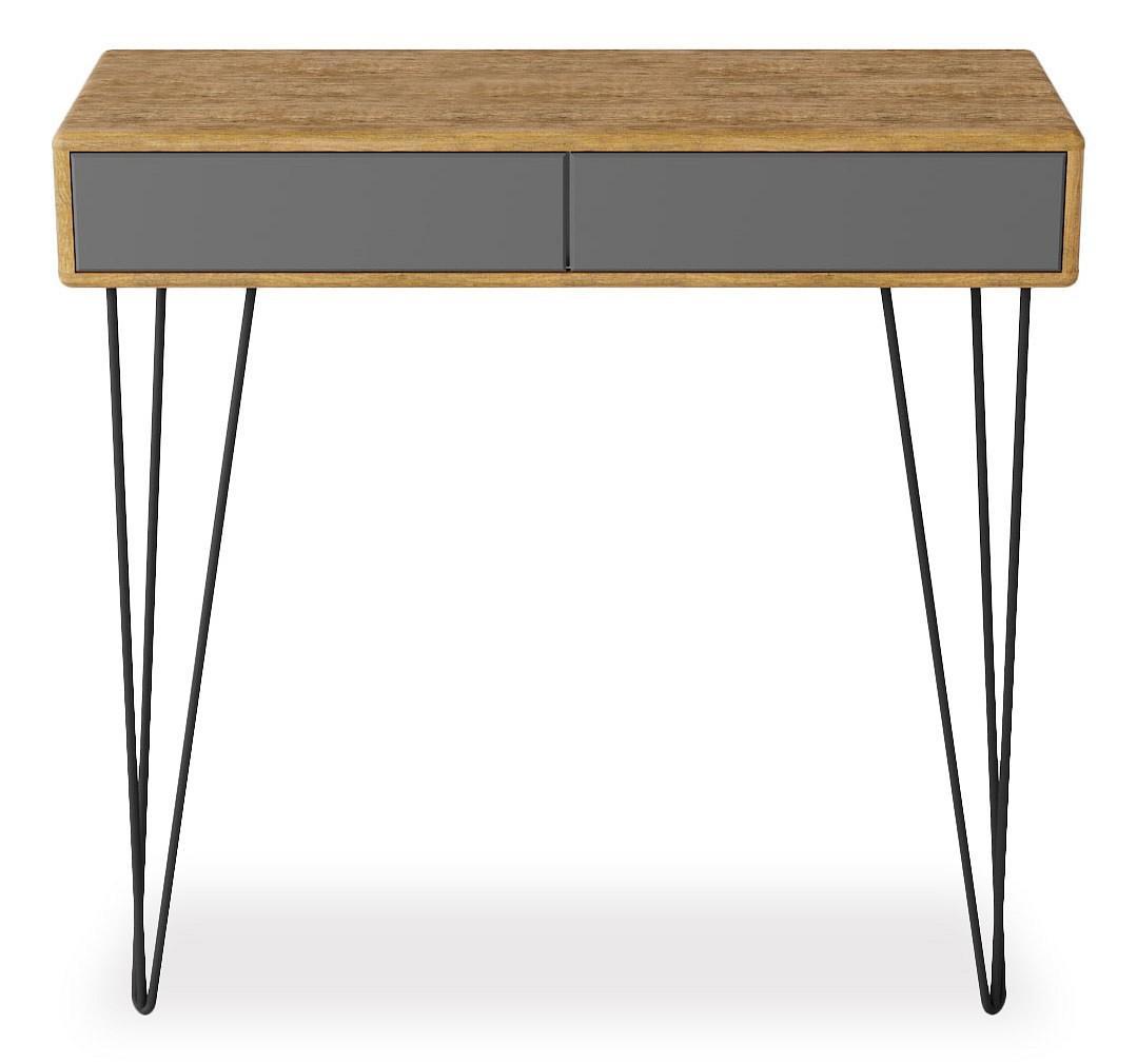 Стол туалетный Телфорд в стиле лофт добавит интерьеру изюминку и не займет много места. Большое пространство для ног позволит удобно расположиться за столом, а пара вместительных ящиков сохранит все необходимое. Металлические опоры выполнены в стиле лофт, столешница и выдвижные ящики - из прочного и влагостойкого материала МДФ, облицованного декоративным покрытием в современном цветовом решении.