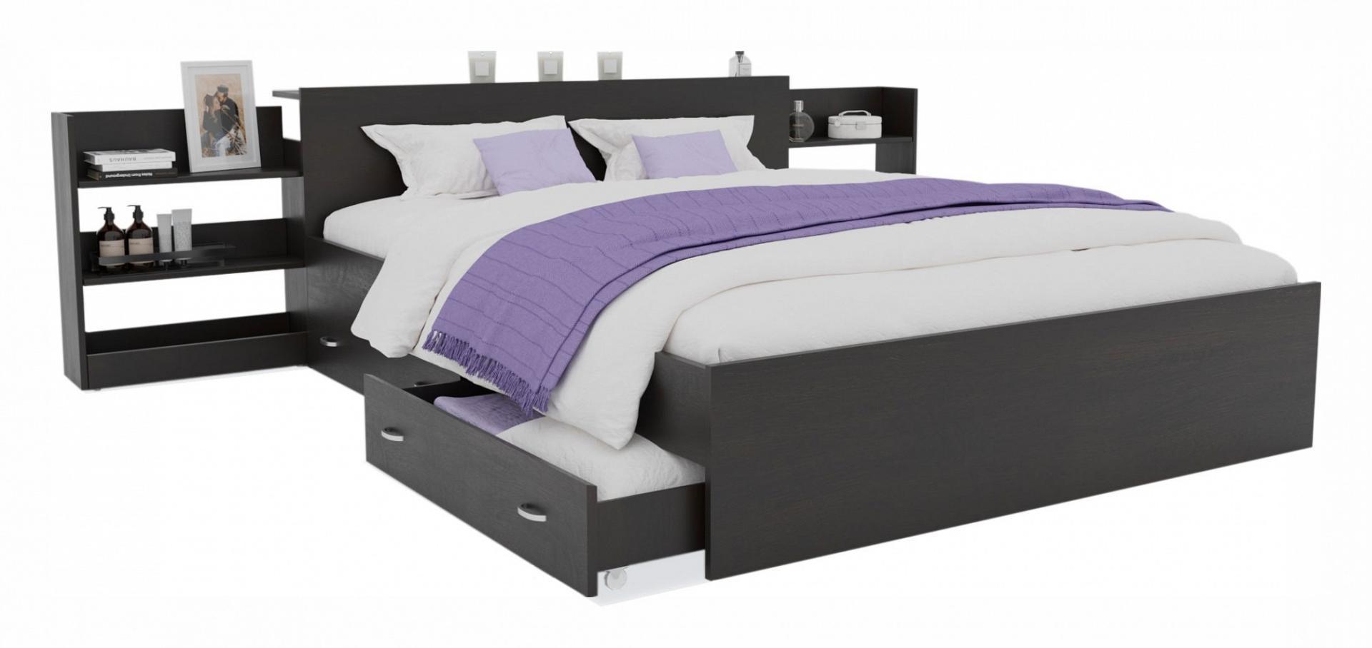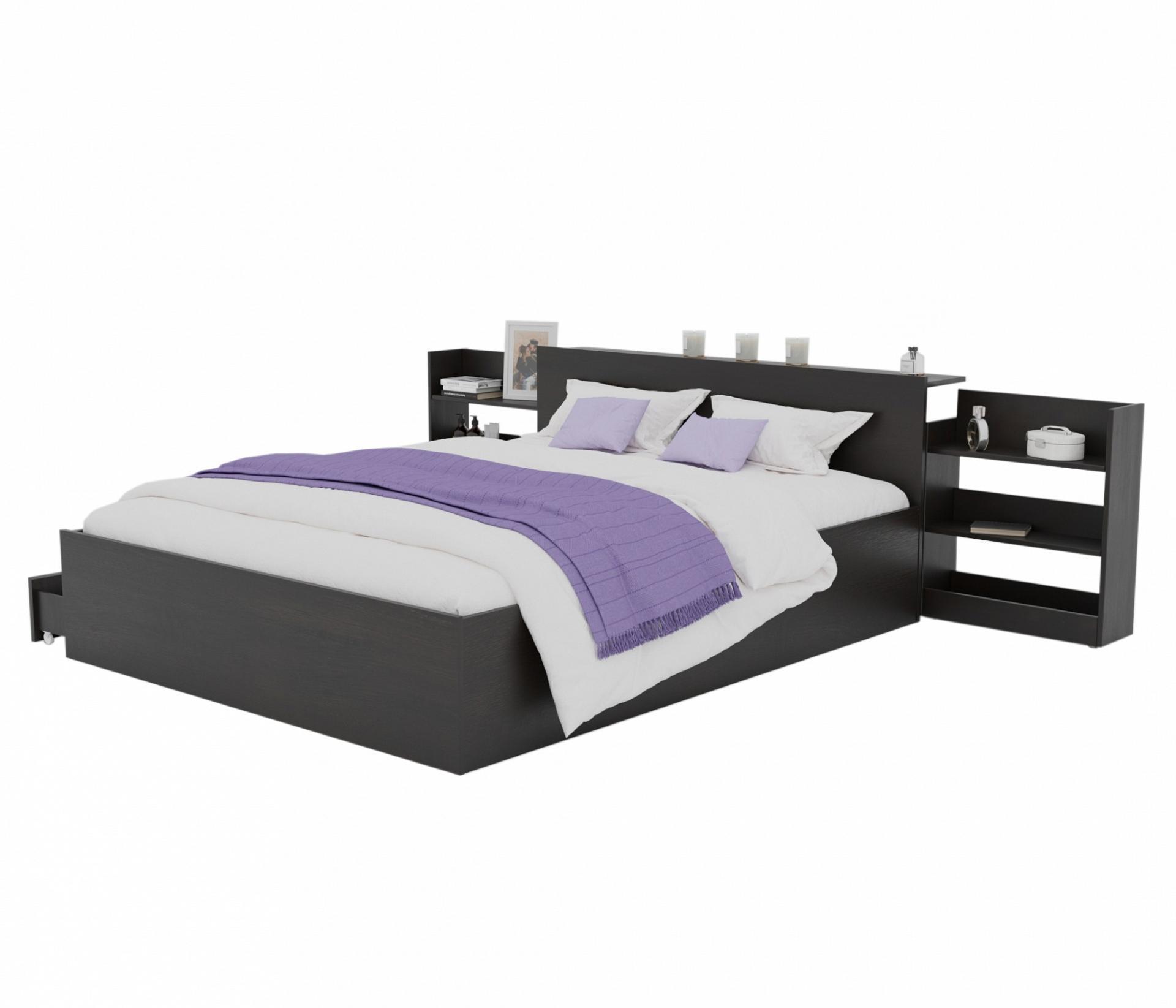 Широкая двуспальная кровать Доминика с двумя выдвижными блоками - функциональный предмет мебели в спальне.