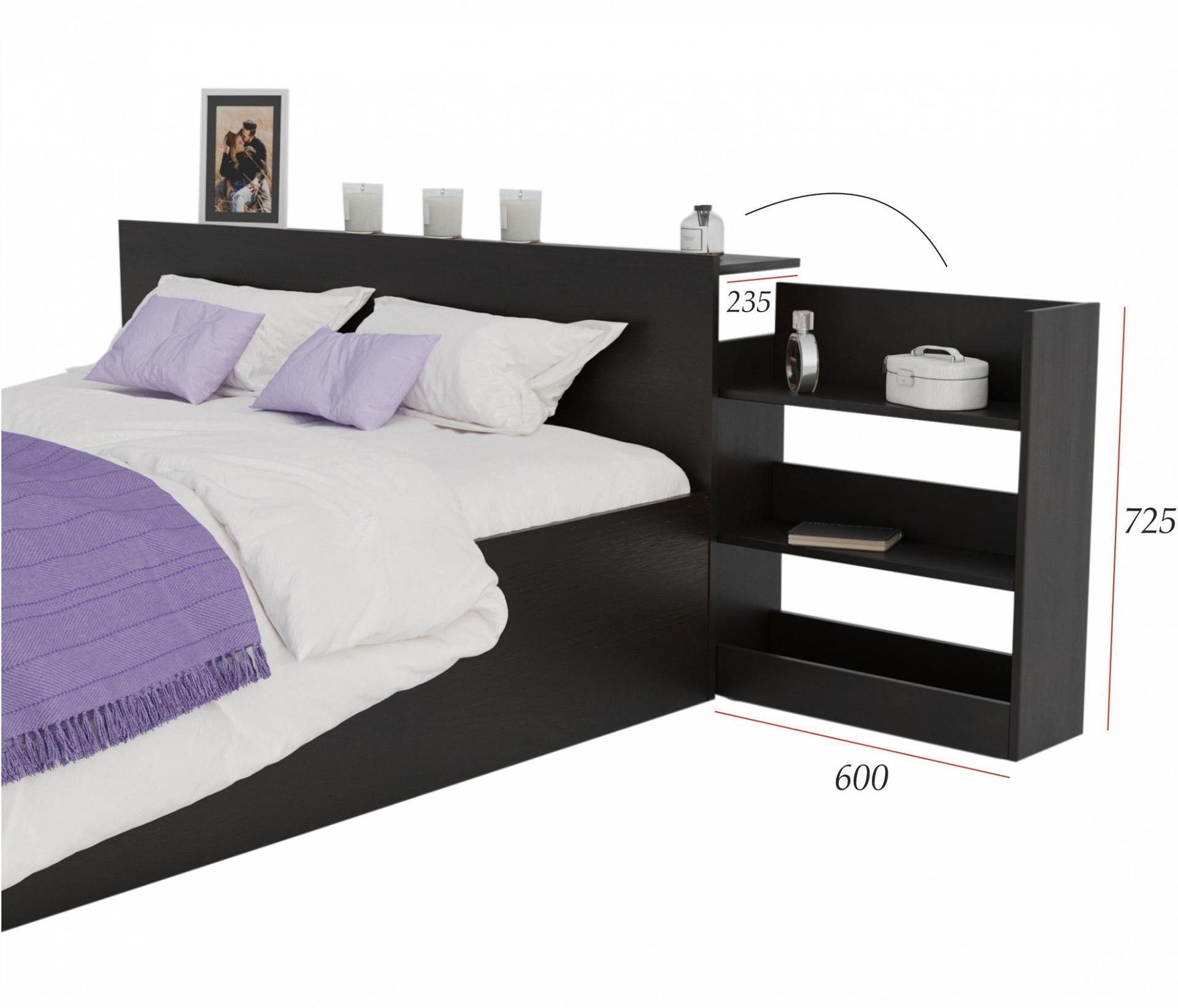 К изголовью кровати крепится полка. На ней можно расположить предметы интерьера, которые украсят вашу спальню. Благодаря функционалу, кровать может быть расположена в спальне как в раздвинутом виде, так и в задвинутом.