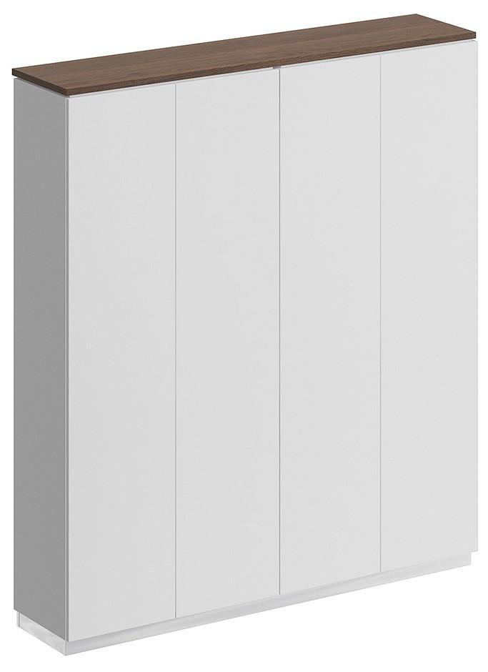 Шкаф состоит из 2-х стеллажей, топа на 2 шкафа, цоколя и дверей.