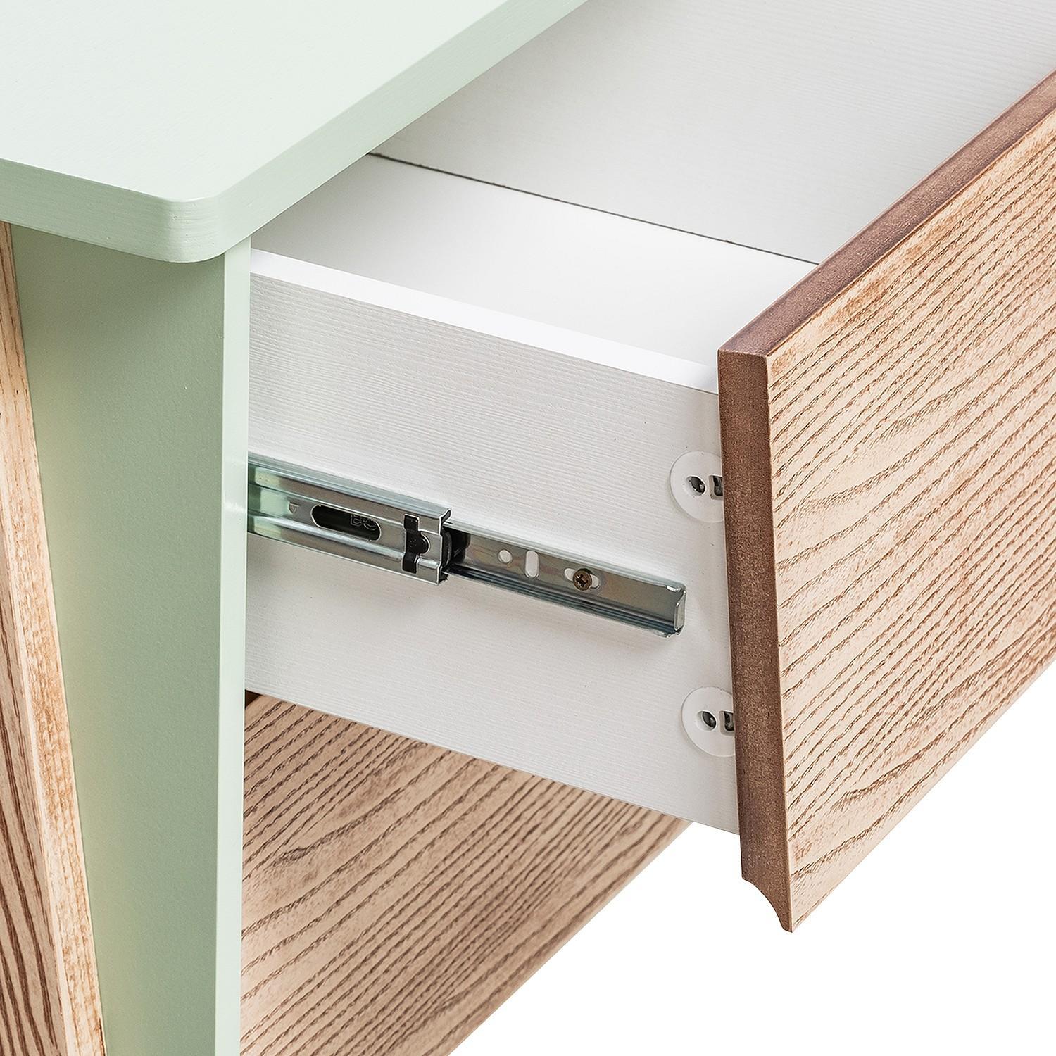 Акценты в новой моделе тумбы под ТВ расставлены правильно – экологичные материалы, мягкий дизайн и прочный каркас. В основе продукта заложен принцип функциональности для комфортного ежедневного использования. Конструкцией предусмотрена открытая секция для техники с задней стенкой и вместительные ящики с плавным закрыванием.