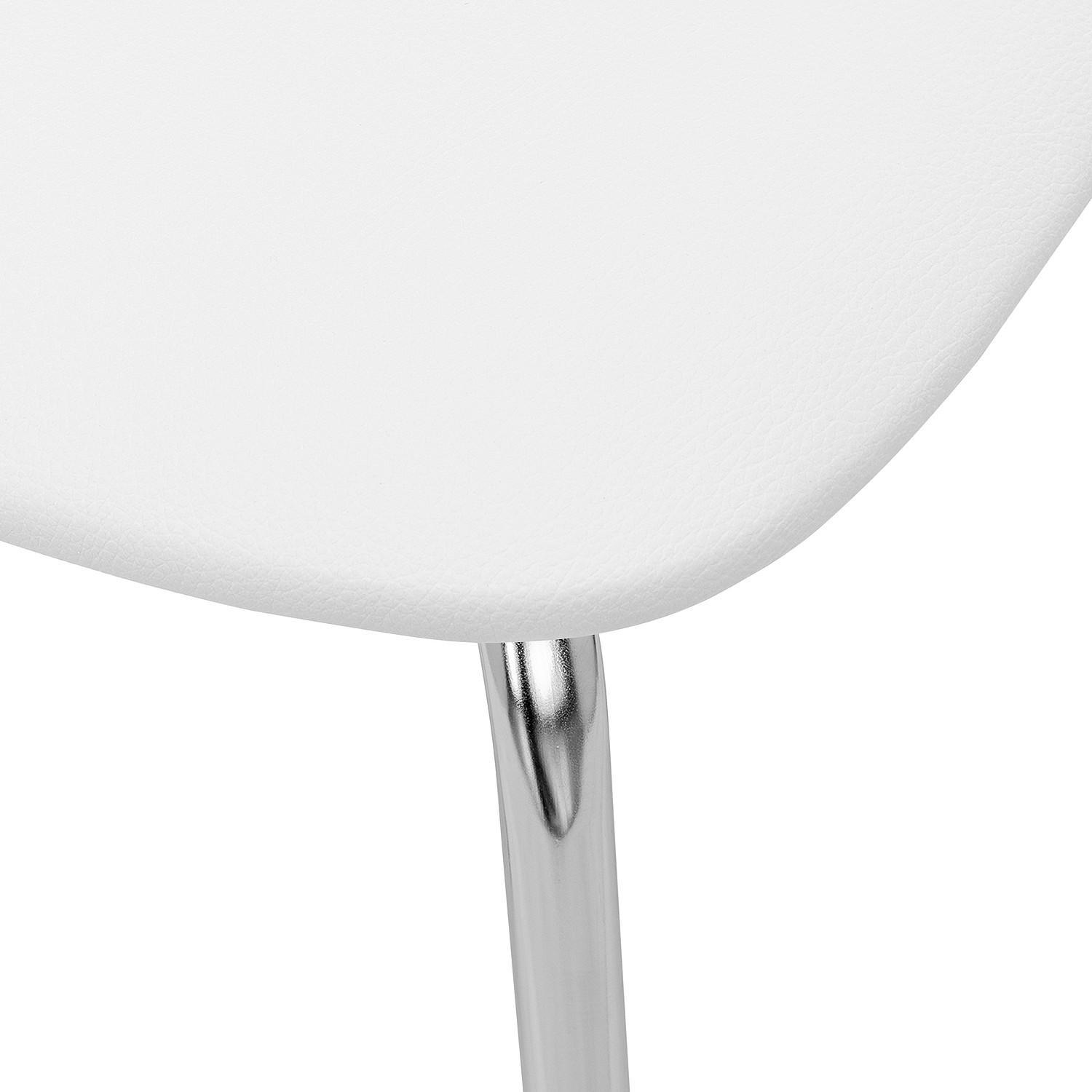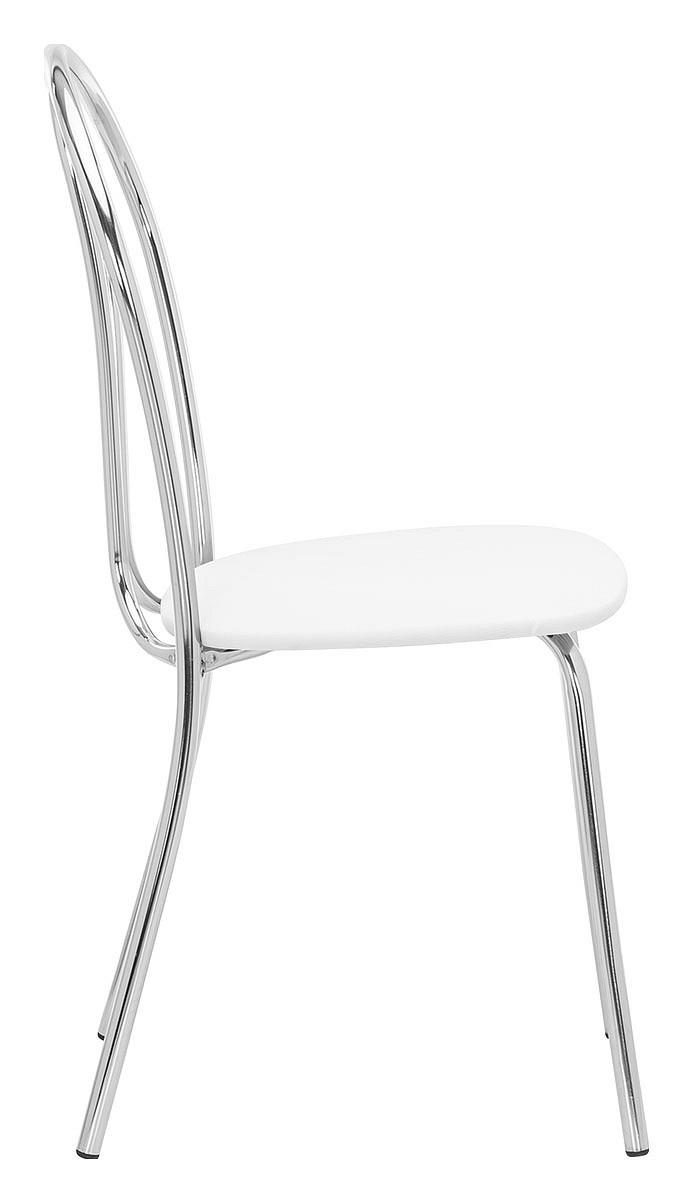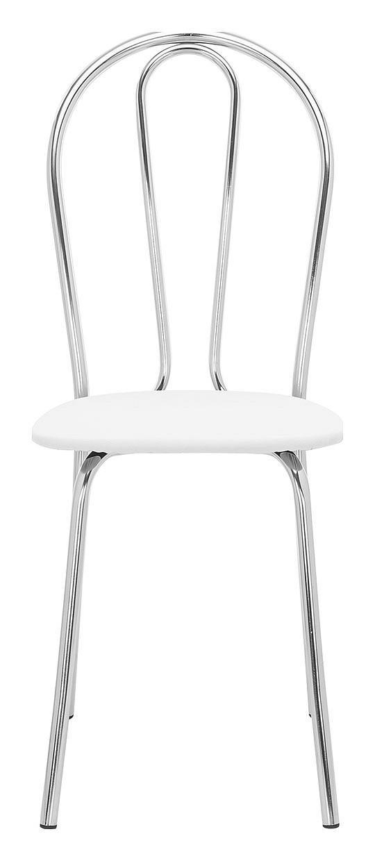 Хромированная металлическая спинка и сиденье, обтянутое экокожей, практичны, удобны и не требуют специального ухода.