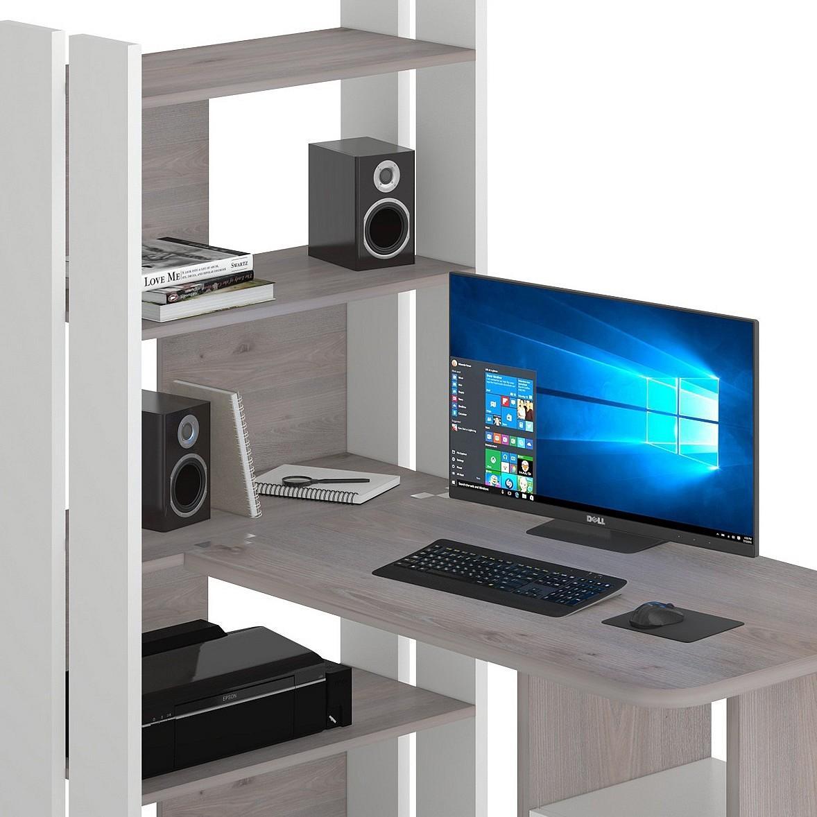 Дети делают на нем домашние задания, взрослые с его помощью зарабатывают деньги – компьютер актуален для всех. Стол компьютерный Домино Lite СТЛ-ОВ+С100Р MER_STL-OV-S100RPryam_BEN – то, что нужно, чтобы создать полноценное рабочее пространство, которое позволит разместиться с максимальным комфортом. Данная модель создана компанией 2735048, серия «Домино Lite», на продукцию предоставляется гарантия (12 мес.). Матовый корпус сделан из долговечного и практичного материала (ЛДСП Е1) и прекрасно впишется в любой интерьер благодаря выигрышному оттенку (белый, нельсон). Столешница, толщина которой составляет мм (материал столешницы), имеет матовый верх, при этом общие габариты компьютерного стола составляют 1322 мм в ширину и 1520 мм в высоту. Производитель также включил в комплект стеллаж: 4 полки,, тумбочка: 2 ящика. Купить Стол компьютерный Домино Lite СТЛ-ОВ+С100Р вы можете на нашем сайте за 11290 руб.