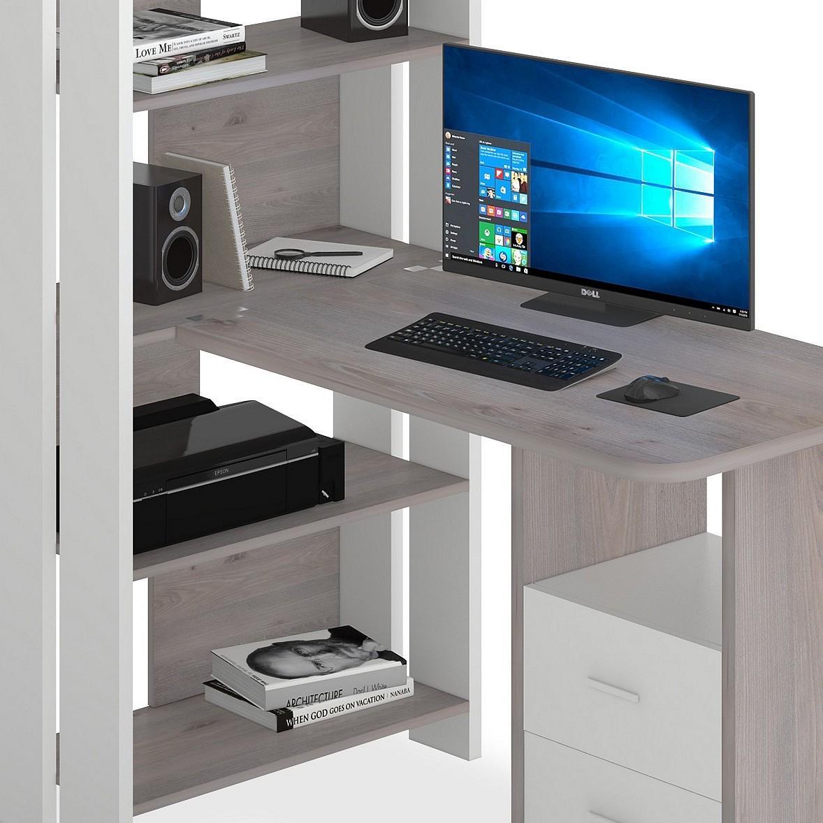 Компьютер давно стал частью нашей жизни. Стол компьютерный Домино Lite СТЛ-ОВ+С100Р MER_STL-OV-S100RPryam_BEN – то, что нужно, чтобы создать полноценное рабочее место, которое позволит разместиться с максимальным комфортом. Данная модель создана брендом 2735048, серия «Домино Lite», на товар предоставляется гарантия (12 мес.). Матовый корпус сделан из долговечного и практичного материала (ЛДСП Е1) и прекрасно впишется в любой интерьер благодаря выигрышному оттенку (белый, нельсон). Столешница, толщина которой составляет мм (материал столешницы), имеет матовый верх, при этом общие габариты компьютерного стола составляют 1322 мм в ширину и 1520 мм в высоту. Производитель также включил в комплект стеллаж: 4 полки,, тумбочка: 2 ящика. Купить Стол компьютерный Домино Lite СТЛ-ОВ+С100Р вы можете на нашем сайте за 11290 руб.