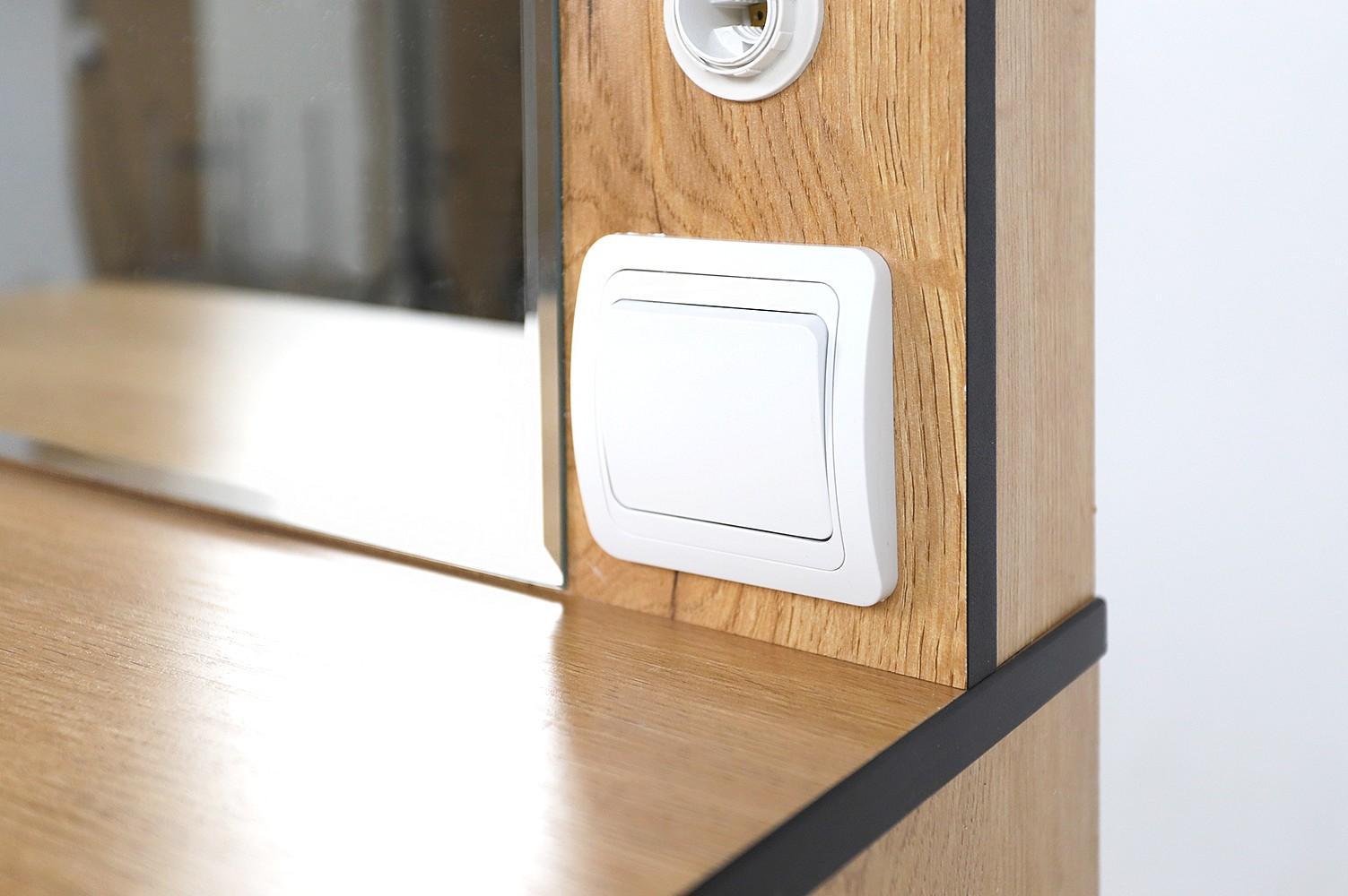 Полюбить себя и почувствовать настоящей женщиной – непростая задача, для этого нужно уметь ухаживать за собой, баловать профессиональной косметикой и, конечно, приобрести стол туалетный Берген 2 MBW_101449. Данная модель сделана востребованным брендом Mebwill. Это изделие относится к серии «Берген 2» и стоит 11480 руб. В комплект входит зеркало,, 1 ящик. Матовый корпус создан в изысканном оттенке «дуб крафт золотой, черный», который отлично сочетается с расцветкой фасада (дуб крафт золотой), сделанного из ЛДСП Е1. Благодаря комфортным параметрам (изделие длиной 1400 мм, шириной 800 мм и с выступом 450 мм), вы сможете разместить все необходимое, сохранив при этом полезное пространство в уголке для женских секретов.