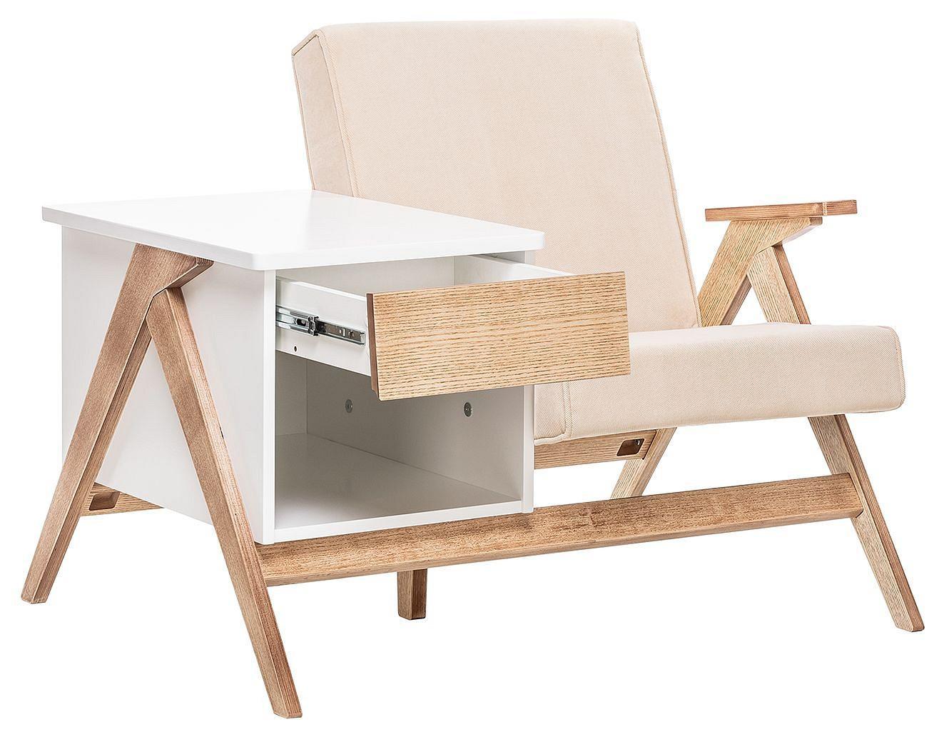 Уютное кресло и небольшая тумбу с эмалированной поверхностью. Каждая линия тщательно выверена и продумана дизайнерами для максимального комфорта – правильный угол спинки, выдвижной ящик с плавным закрыванием, скругленные углы на столешнице способствуют продуктивной работе и отдыху.