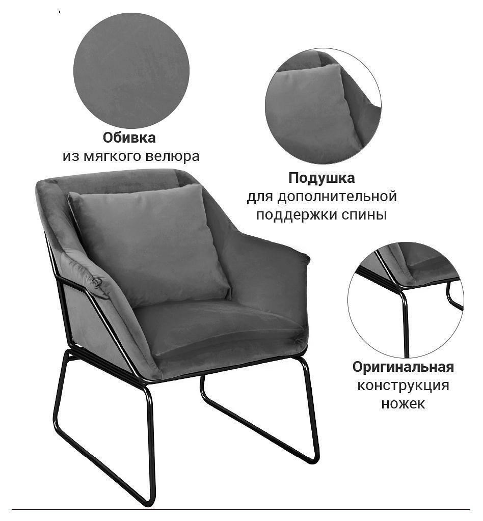 Кресло Alex сочетает в себе модные дизайнерские решения и функциональность: эргономичная форма спинки, приятная на ощупь велюровая обивка самых актуальных оттенков и прочный, но легкий и лаконичный металлический каркас создают эффект парящего в воздухе облака.