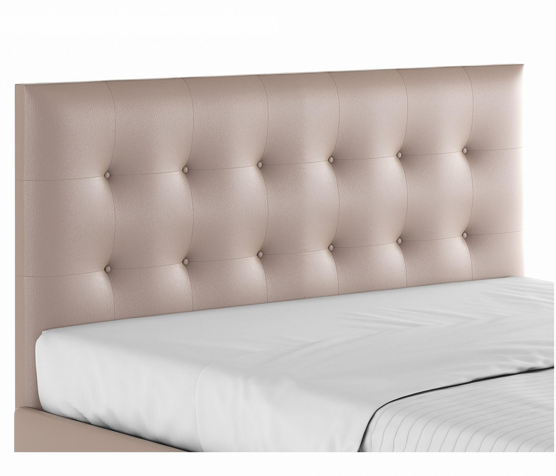 Кровать имеет рельефную мягкую спинку с неглубокими стяжками, которые придают особую изысканность изголовью. Обивка изголовья и весь периметр кровати выполнен из высокопрочного материала “Винилискожа”.