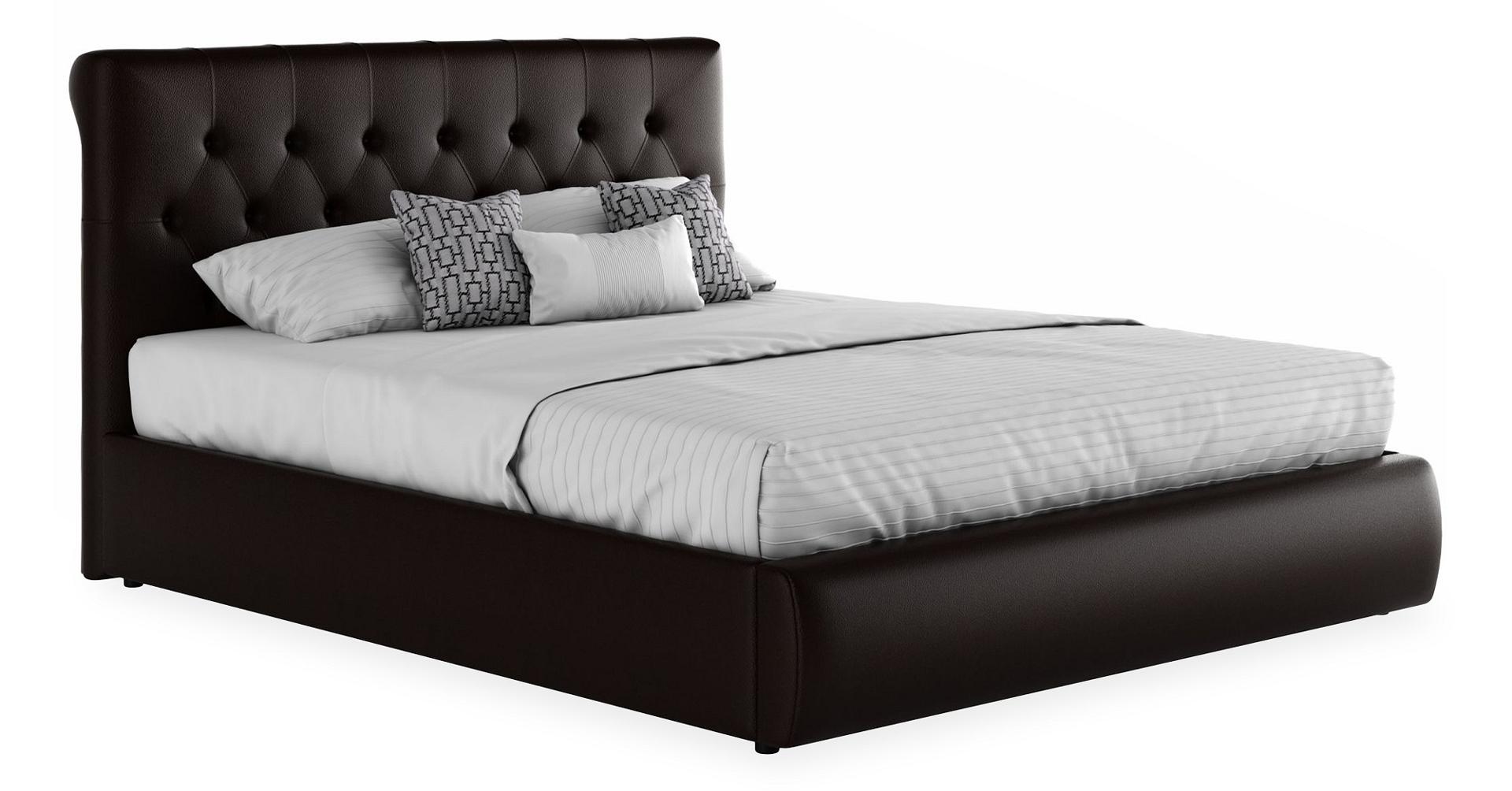 Кровать имеет рельефную мягкую спинку с неглубокими стяжками, которые придают особую изысканность изголовью. Обивка изголовья и весь периметр кровати выполнен из высокопрочного материала “Винилискожа”.