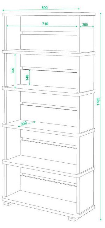 У вас много литературы или вы решили интересно обыграть интерьер, украсив его оригинальным декором? Прекрасным выбором будет MER_SB-25-5-N - стеллаж Домино СБ-25/5, разработанный представителями бренда Merdes в рамках коллекции «Домино». Благодаря эргономичной форме, он займет совсем немного места, при этом вы сможете разместить в нем все необходимое (ширина стеллажа 800 мм, высота 1785 мм, глубина 340 мм). Стеллаж выполнен из современных материалов (ЛДСП Е1) и имеет корпус выигрышного оттенка (нельсон). Производитель предлагает за цену 9590 руб. стеллаж, в комплекте с которым идут 4 полки.