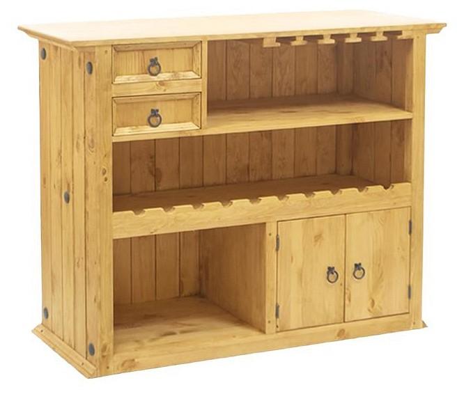 Оригинальное и просто незаменимое приобретение для загородного дома или квартиры. Настоящий деревянный бар разместит бутылки, сверху можно повесить бокалы. Два малых ящика и небольшой шкаф с дверцами пригодятся для хранения мелочей, салфеток, прочих аксессуаров. Модель отлично сочетается с классической мебелью и гармонирует с интерьерами в стиле прованс.