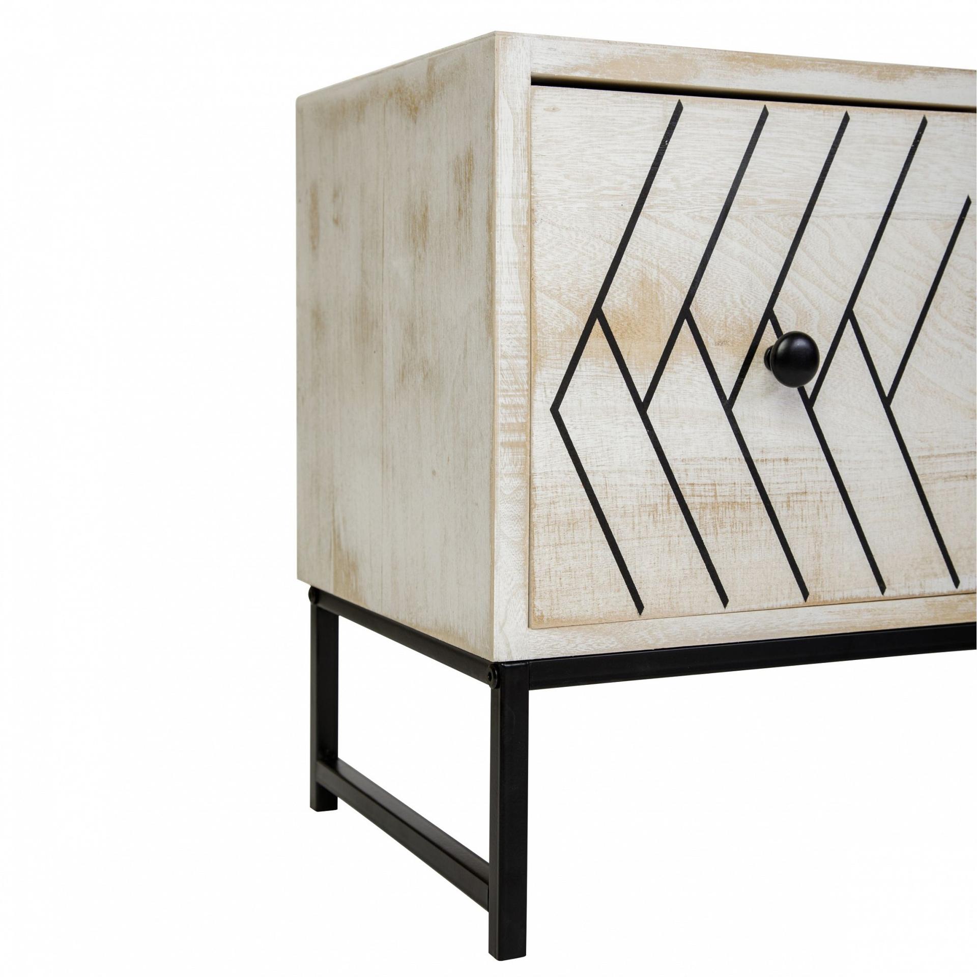 Ножки тумбы изготовлены из металла с порошковой окраской. Корпус и ящики изготовлены из дерева (Павловния войлочная), окрашены.