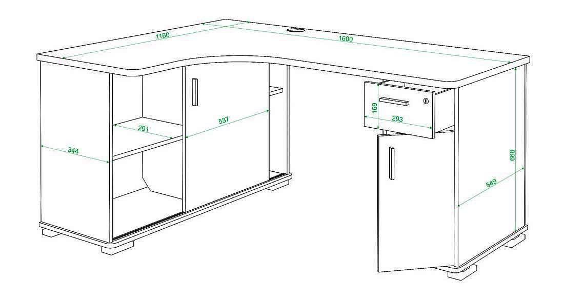 Учеба, работа или чтение – Стол письменный Домино СР-160М MER_SR-160M_K-PRAV, созданный брендом 2735048, отлично подойдет для реализации любых задач. Эта модель входит в коллекцию «Домино» и способен подстроиться под нужды каждого члена семьи. Благодаря оптимальным размерам изделия (1600Х1160Х745 мм) вы сможете с комфортом заниматься любимыми и важными делами. Базовая комплектация включает в себя непосредственно письменный стол, тумба: