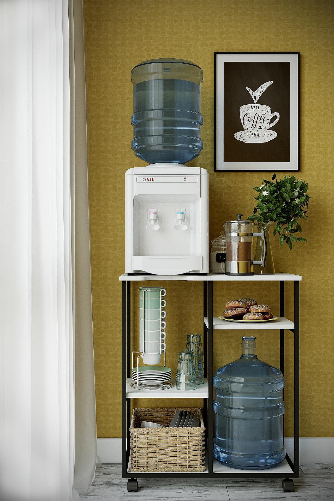 Подставка для воды УОТЕР LOFT, выполненная в стиле лофт, безусловно подчеркнет стилистику помещения. Сборно-разборный каркас подставки изготовлен из профильной трубы 15x15 мм, полки выполнены их экологичного материала МДФ. Подставку можно использовать и для кулера, и для бутыли, и сочетать бутыль с кулером и дополнительной бутылью. Основание подставки на роликовых опорах. Цветовая гамма подставки дополняет основную стилистику: влагостойкое декоративное покрытие, стилизованное под камень и дерево, безусловно придаст оригинальности и эстетики интерьеру.