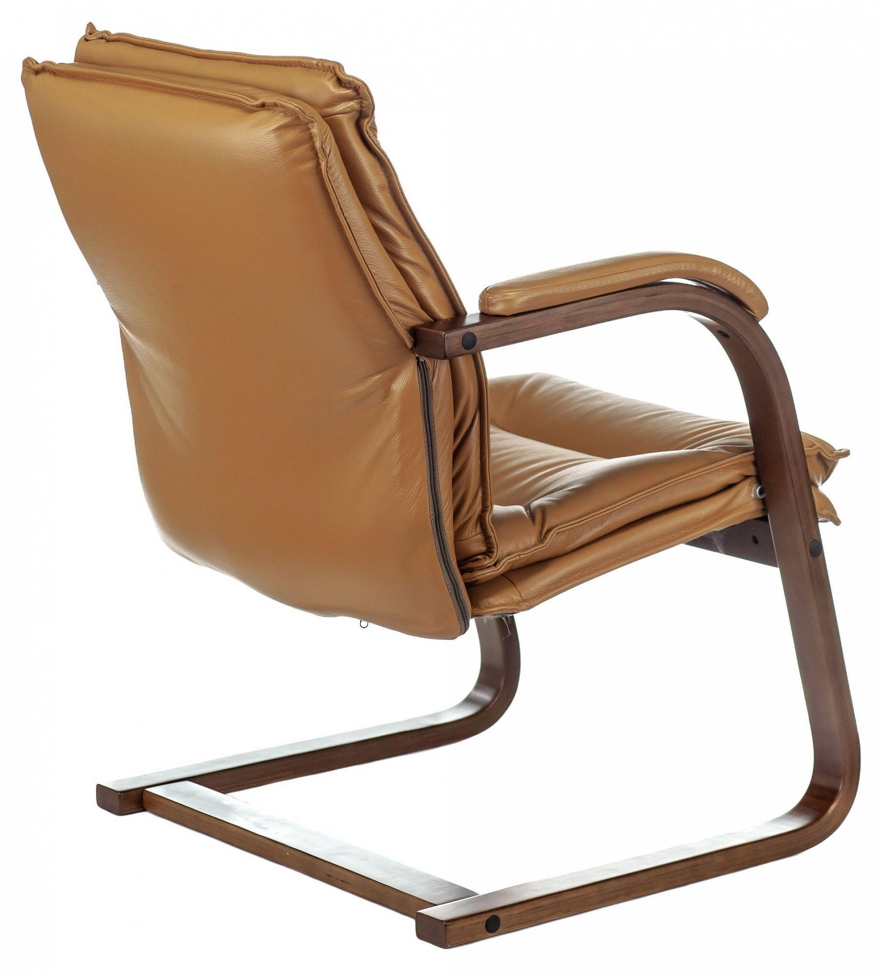 Подлокотники деревянные цвета темный орех с мягкими накладками из натуральной кожи (лицевые части). Каркас деревянный, полозья. Соответствует стандарту Bifma.