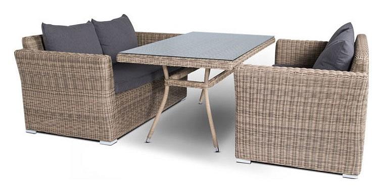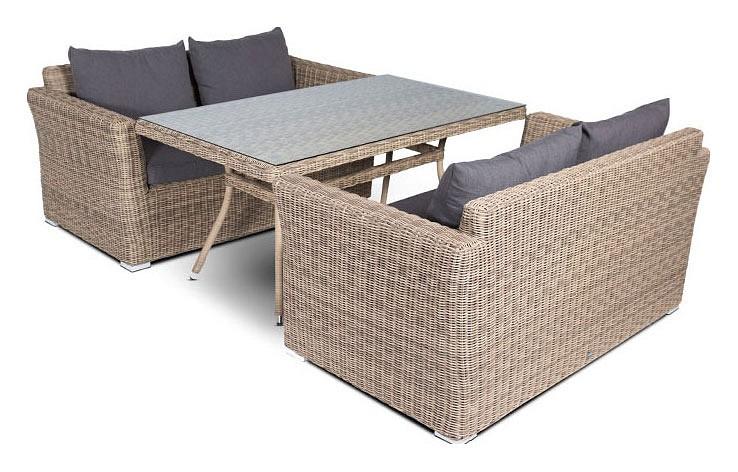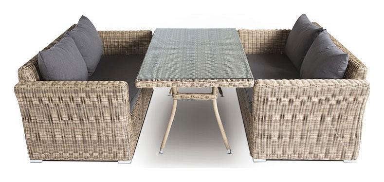Подушки выполнены из водостойкой полиэфирной ткани для защиты мебели от дождя и солнца. Съемные чехлы.
