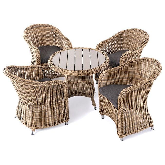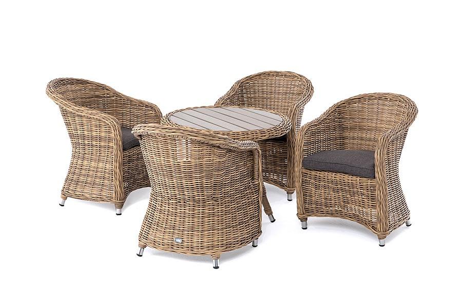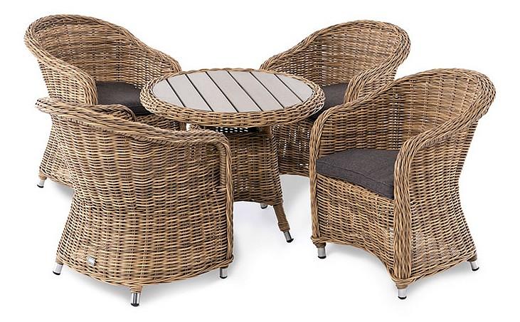 Подушки выполнены из водостойкой полиэфирной ткани для защиты мебели от дождя и солнца. Съемные чехлы.