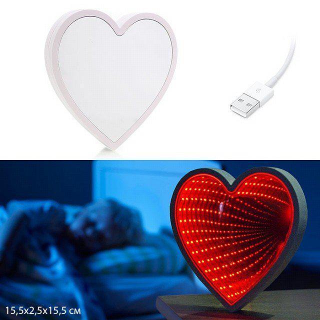 628707 (в кор.60шт.) - Светильник зеркальный Сердце с 3D эффектом туннеля LED /878-24/, размер: 15,5х2,5х15,5см., материал: пластик.